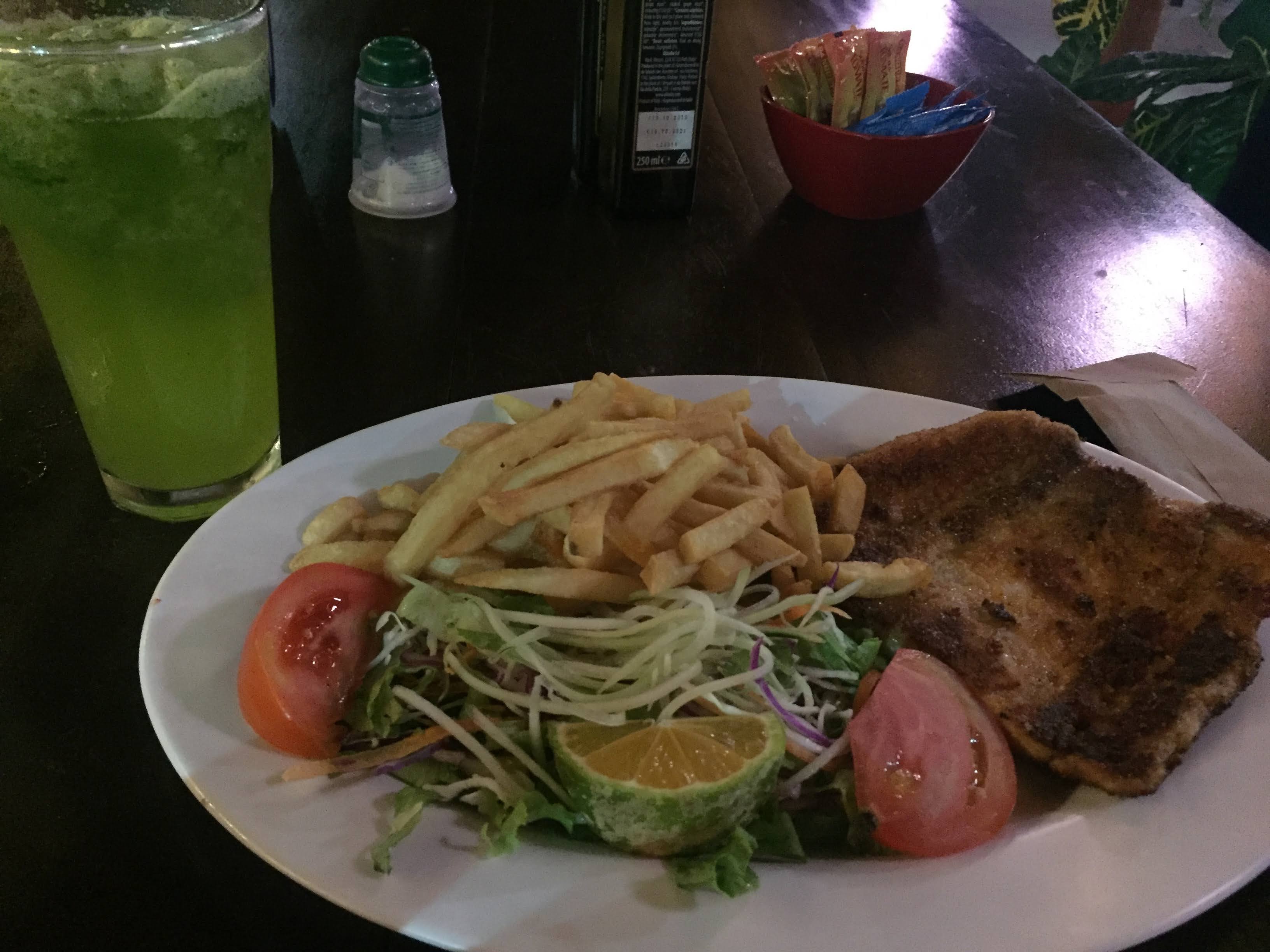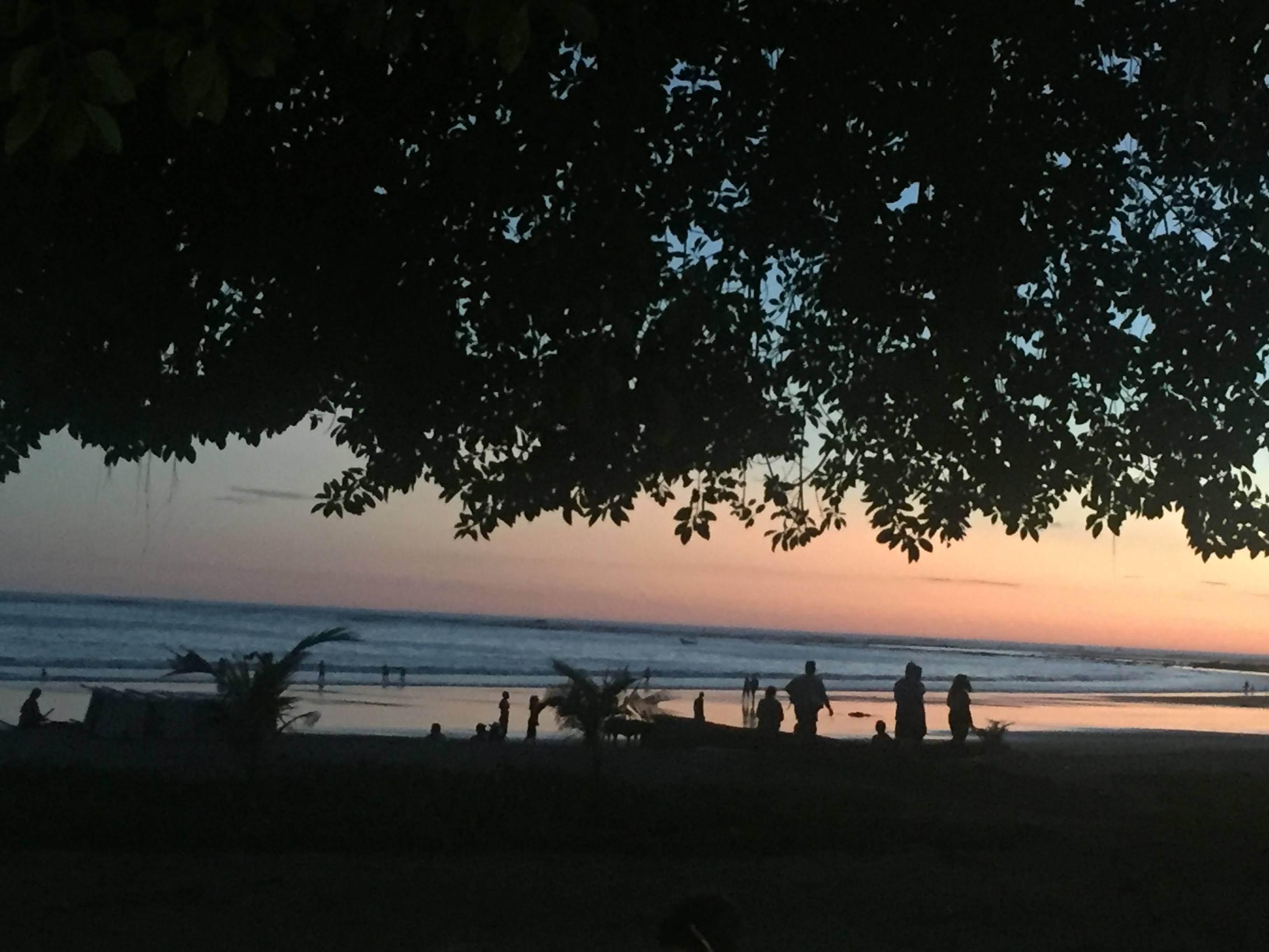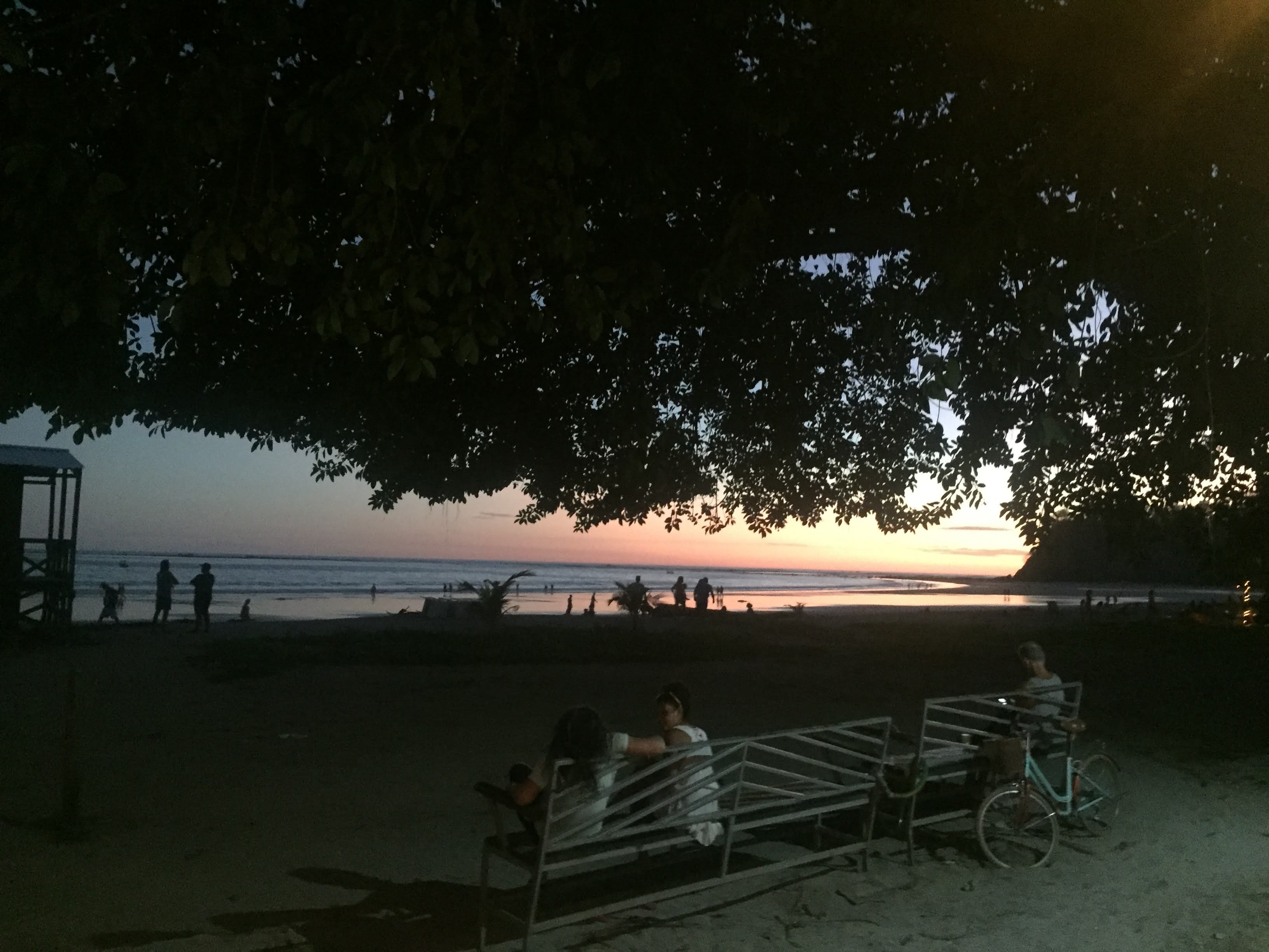 Tonight for supper, I decided to go to a restaurant that I like right on the beach. It serves typical Costa Rican food. I really wanted some fish and this restaurant has good fish. It’s an outdoor restaurant so you get to eat outside and watch the sun go down over the ocean. It was lovely and my fish was delicious! I also had lemonade with mint. Overall, it turned out to be an interesting day. I’m posting a few pictures of my hiking trail and my dinner. I took the daytime ocean pictures from the top of the hill I climbed, but it’s hard to tell how high up I am. In one of the pictures, you can see an island in the distance. I’m pretty sure that’s where I’m going snorkeling tomorrow.