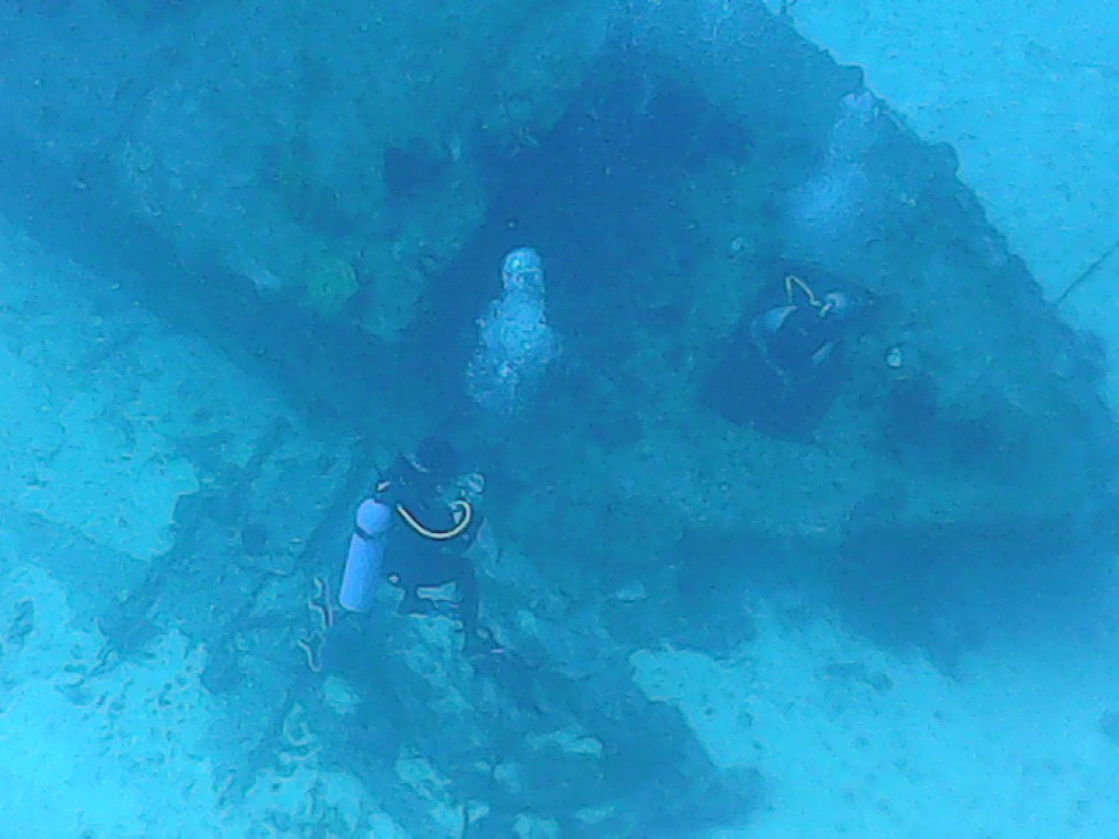 So my first dive was with a group that all was able to go deeper than I am currently rated. I’m supposed to be going down to a max of 60 feet or 18 meters for those who like metric. They were going down to around 100 feet. I sort of drifted to about 80 once before I noticed how far down I was. I was able to hang out between 60-70 feet though for most of the time they were doing their thing. They got to swim through a sunken tug boat and there were two people that were doing some skills things for their advanced certification. After that they came up a bit and swam around a reef that was about 80 feet and I just was above them, it worked out okay, I spotted 3 lion fish though I think they only got two. There was a kid learning and he missed the last one and nobody tried again because we were going to do our safety stop. He missed one of the others but the guide got it.