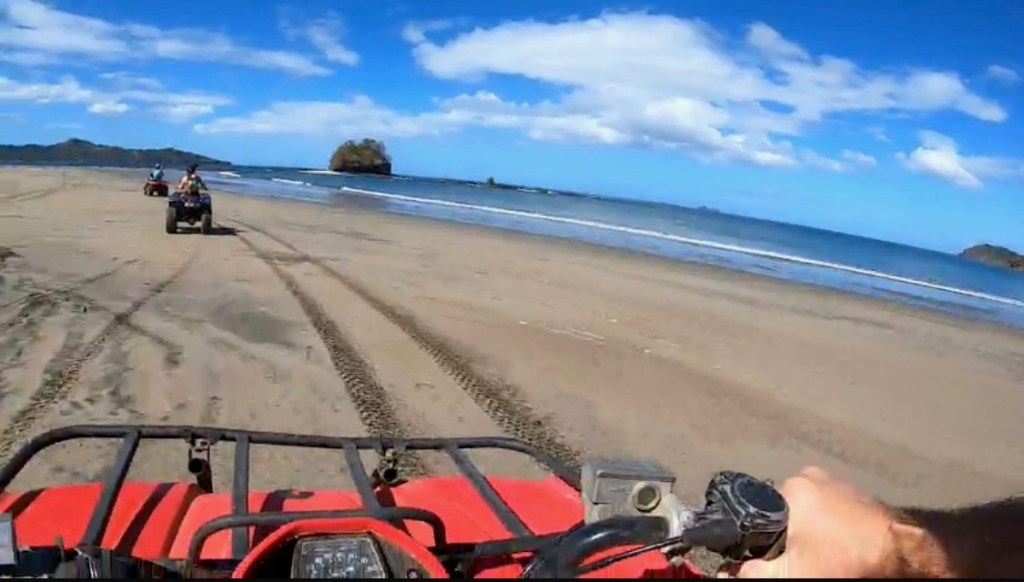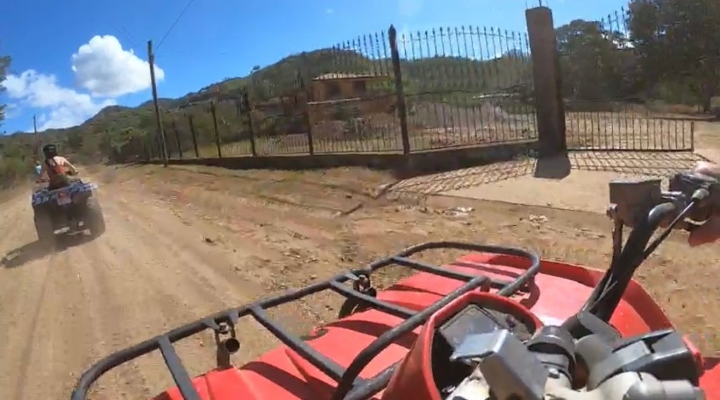 ATVs in the dry season is a dusty affair. There was less beach riding and more level B/ field road riding but, a lot worse. I’ve cut across a harvested cornfield that was smoother than some of these roads. There is a dark red color to the soil where it’s freshly dug or wet. Because it’s so hilly there’s a lot of areas that have been eroded and then there are holes for no identifiable reason. People with a want of new shocks and struts or rentals were taking hatchbacks on them, very slowly, we’d pass them. The roads are so bad that the ATV that Emily was riding lost a wheel! She was riding in front of me and all of a sudden her rear left wheel came off and made a brake for the side of the road. The wheel was still attached to the hub so it must’ve lost a hub nut and washer. These thing have to take a beating. Instead of waiting for them to bring another out her and I just rode two up which was fine with Emily, she gets to enjoy the views more that way. We got to see some of the other beaches, some monkeys and sea life. There is a beach, Pirate’s beach that we think would be nice to try and snorkel at. I have extra time and money tomorrow so we may have to see what we can do.