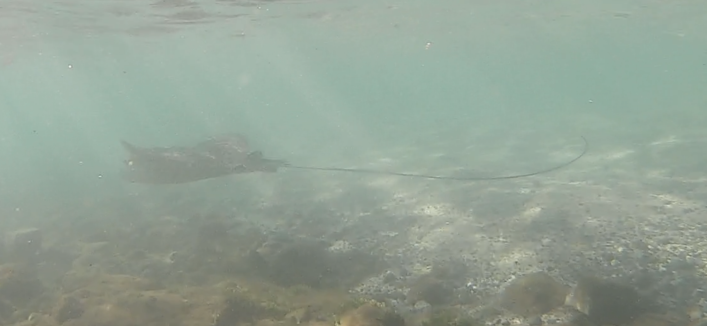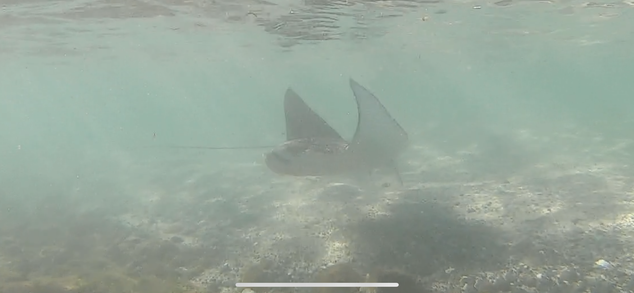 Today I was able to see the rays in the water, they didn’t want to swim with me. They did again with Emily though. They should be more afraid of her, she’d be more likely to try and touch them, I just wanted their picture.