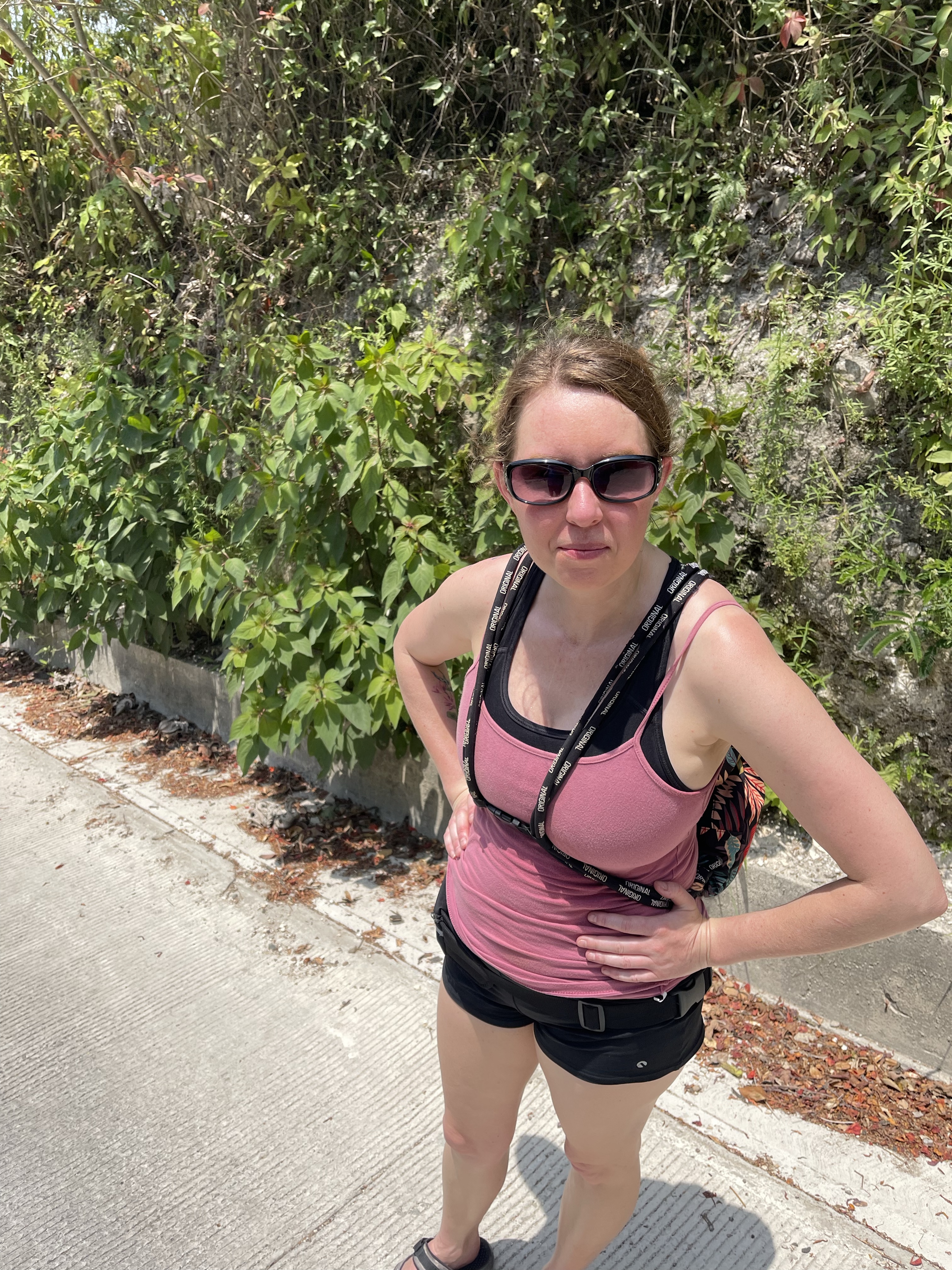 After the ruins we walked down (like a 13% grade, I checked it with the level on my phone) to the Cozy restaurant and bar. The food wasn’t bad there. We stopped because we were hungry and I needed some food. I ordered a Cuban but I got a chicken club. The place was interesting because the open areas had wood slats around the bottom of the railing then above was all chain link fence. We sat and wondered about if we should have tried the place across the street where they were cooking on half a 55 gallon drum on the sidewalk, it seemed popular with the guys in white uniform shirts, maybe police or security guards.