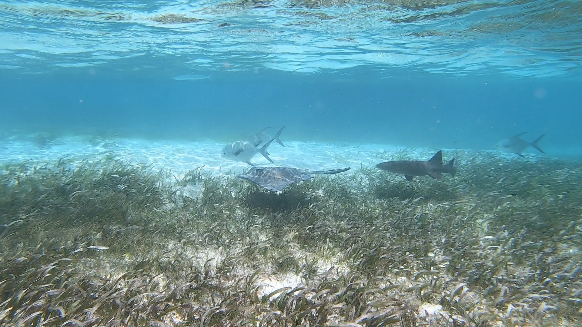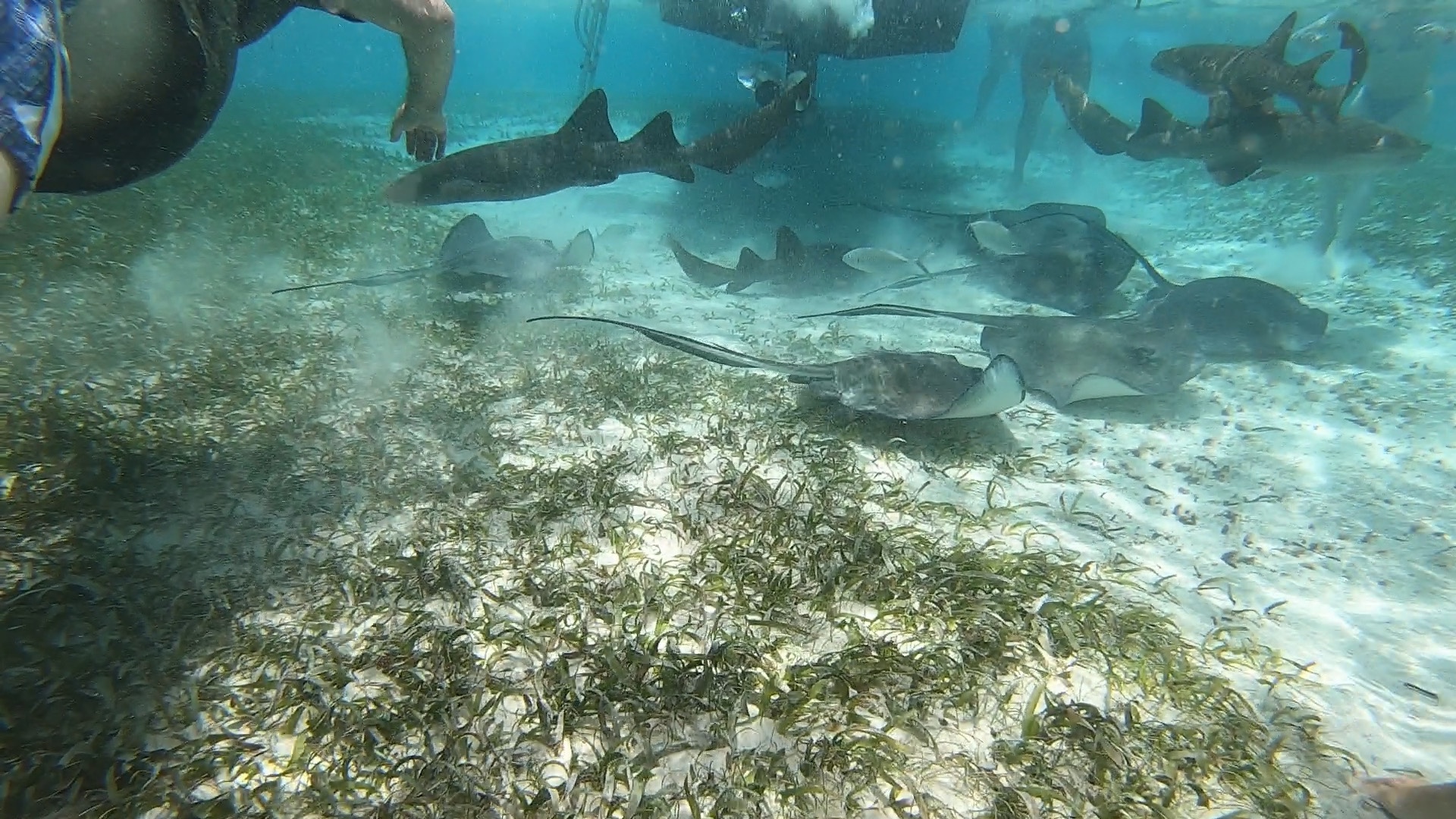Next we went and swam with sharks and stingrays. Stingrays can only sting you hard once like a bee and the stinger stays in. It was neat to swim with the sharks and rays.