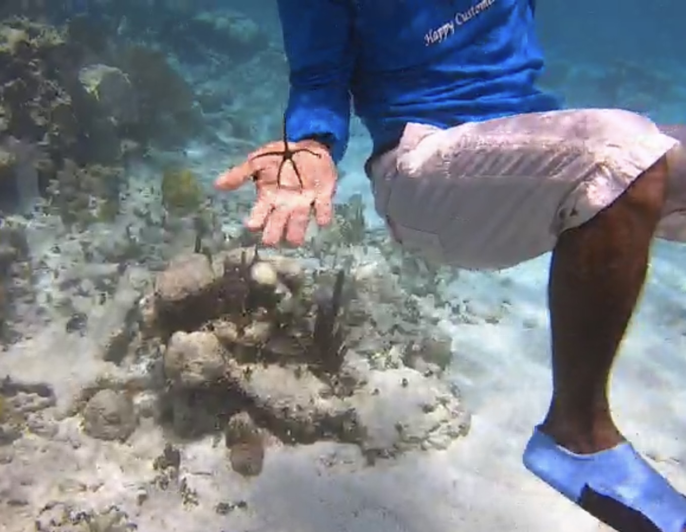 Then we had two stops along the reef, one was by where the manatees hang out and then the channel. The water was pretty clear and not all that deep.