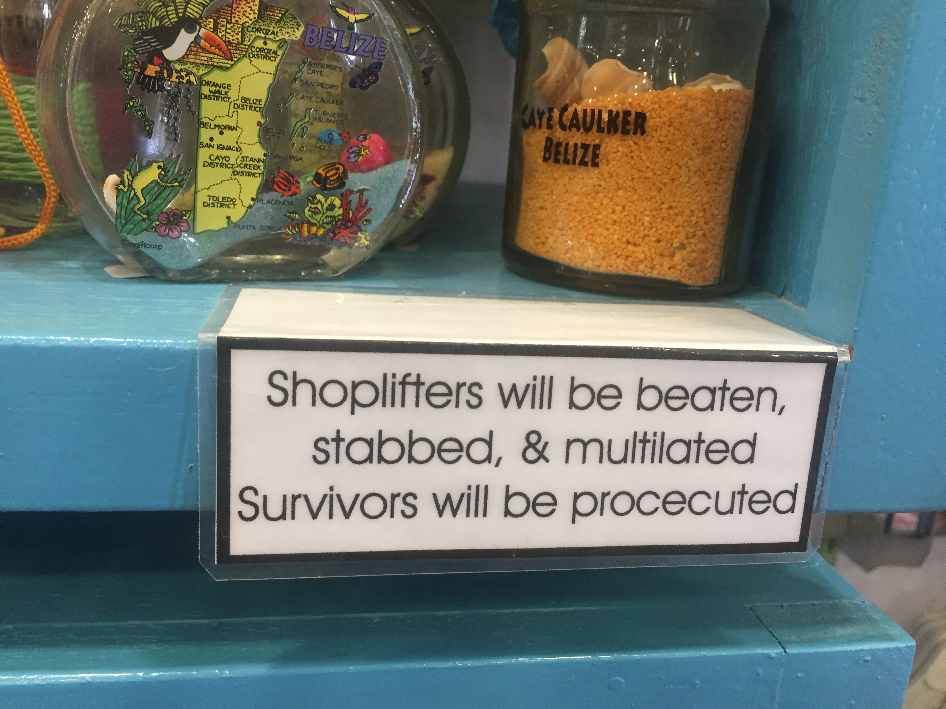 The shop where I bought the cup had a funny sign warning people not to shoplift.