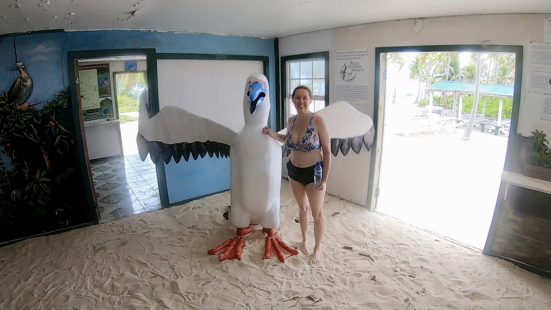 They gave a good snack offering after the first dive, huge box of junk food and fruit on plates. There was lunch after the second dive. Some chicken concoction with rice, pasta salad and a layered salad. It was okay Emily and I walked out after lunch to see the boobies, they are birds and not that interesting. A bird watcher I am not. We did see lizards and crabs along the way.