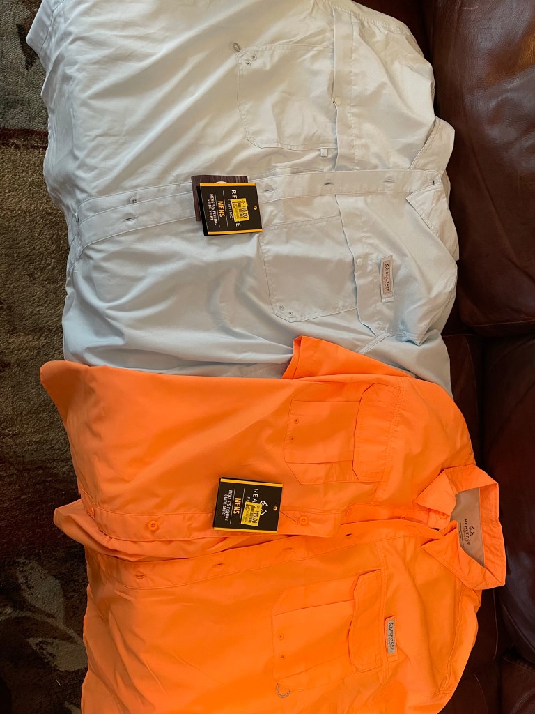 Today I picked up a couple more of the Realtree fishing guide shirts. They were very nice in the hot weather and they look better than T-Shirts, they also take up less space in packing and dry faster. Original price is $14.95 but they’re being clearanced for $10. They are found in sporting goods.