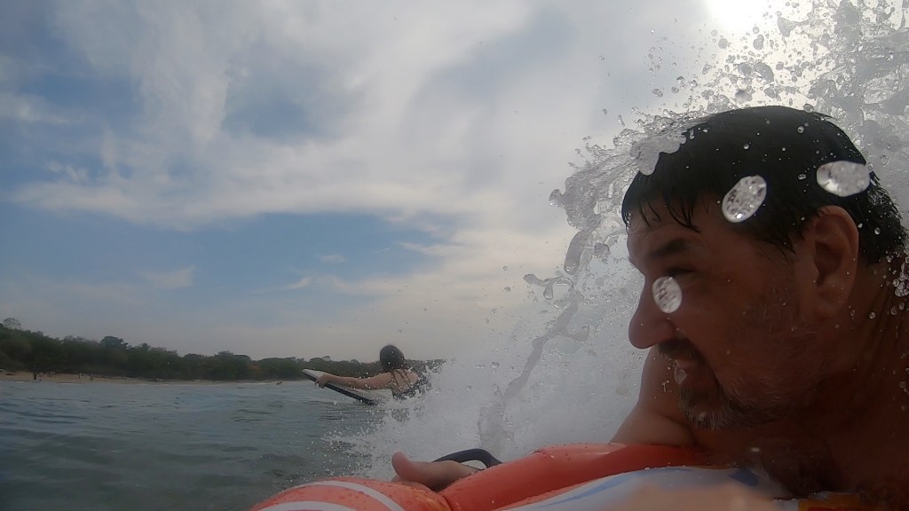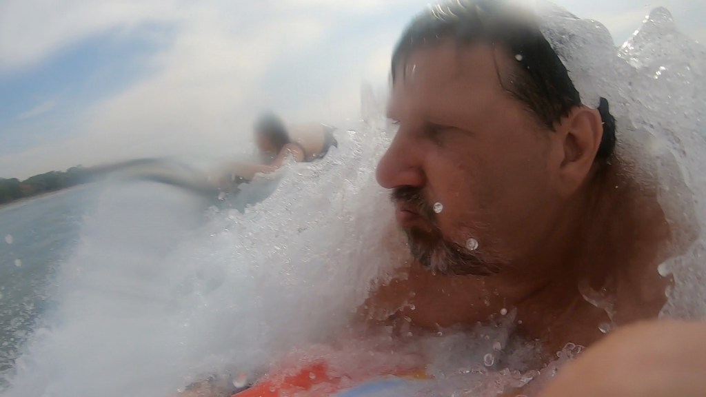 Today was a pool and beach day. I took the GoPro so that we had some pictures. Emily got a board again and I used my blow up board. I don’t remember if I mentioned that I broke my cheap one the first day in a wipeout. Seems like I did.