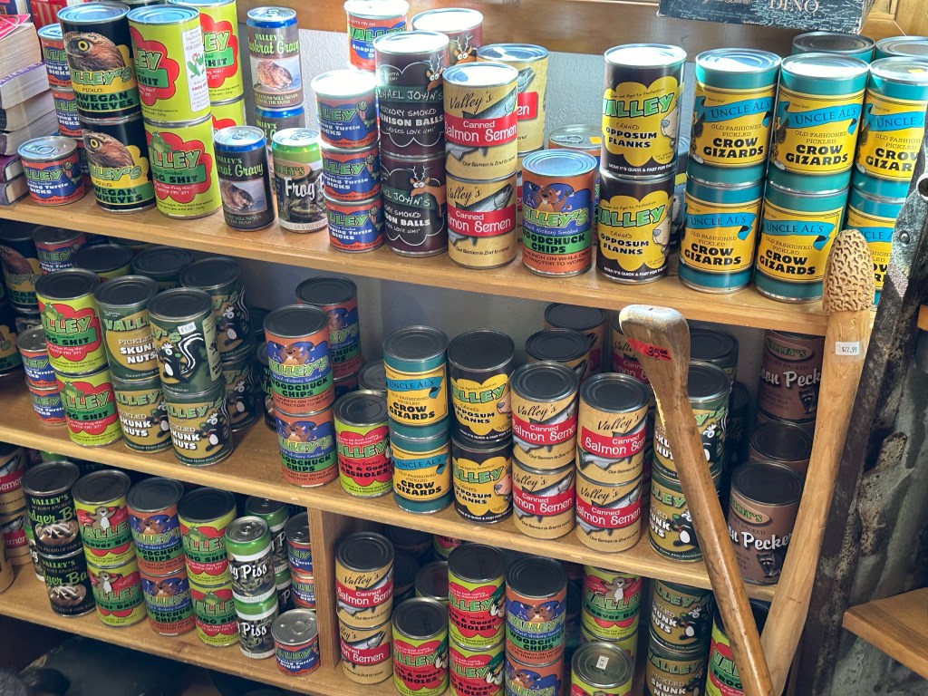 To make it seem like we did some real traveling, we crossed the big river and visited Prairie du Chien, Wisconsin. No trip to Prairie is complete without a stop at Valley Fish and Cheese. There you can get faux fur hats, real turtle shells, novelty canned goods and of course fish and cheese. The have smoked carp, salmon and trout, you can get packages of turtle for soup and a variety of cheese curds. The line was long so we will have to go back for cheese curds another time.