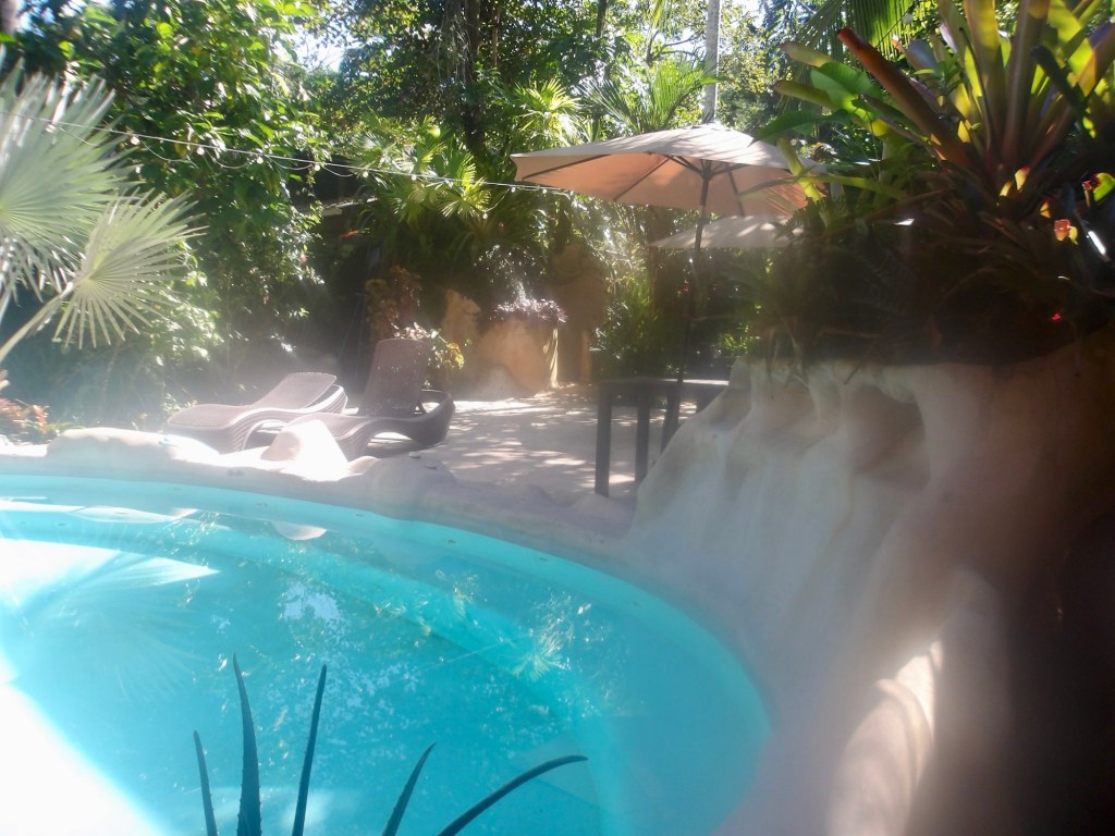 Some shots of the Caribe Town Hotel. It’s not a bad place to stay. Location isn’t bad, no crazy partying going on here. I would like a better pool and maybe a little warmer. It’s nice to have the pool option after being in the ocean, there’s no bobbing or fighting waves. It’s nice to relax and swim sometimes without all that action! This pool is a salt water pool so no chlorine. It’s not as salty as the ocean. There is a nice area for yoga and boxing. I didn’t see anything for resistance training but I brought my own bands. I did a workout with them yesterday and they worked well.