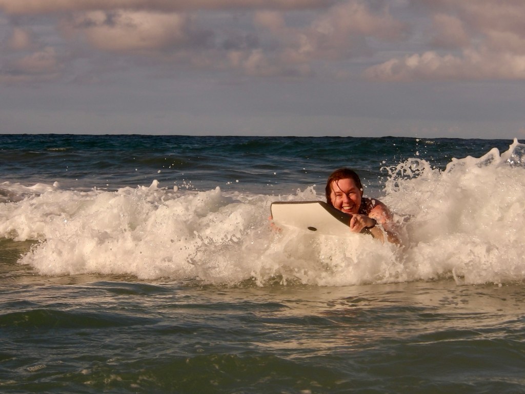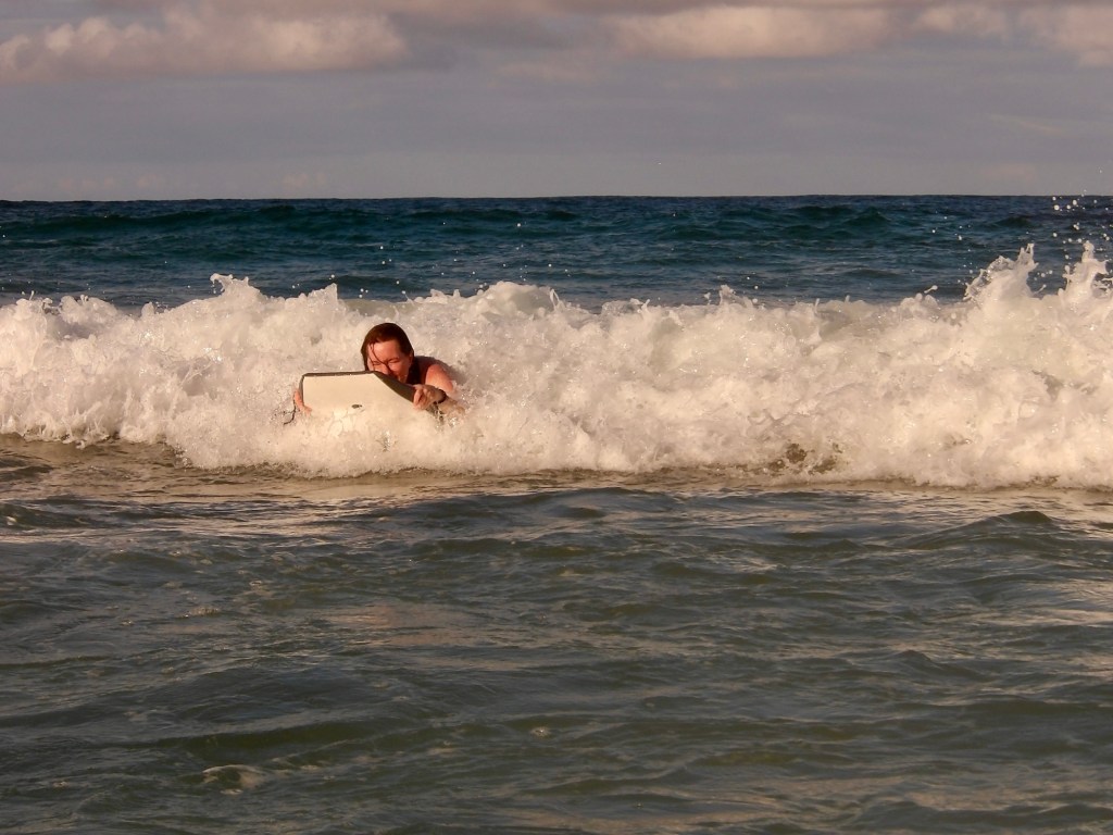 Emily got to use her new boogie board yesterday! The sea was rough!! Waves were tall and rolling in fast! As she mentioned our first location we were waved off due to riptides. They will pull you out to sea and it can be a long swim back. We moved to where there were lifeguards watching, not sure from where though as I did not see one. They did have a red flag up though. The area we went to was in front of the restaurant we had our first meal at after arriving. Green flag is the best but the lady that waved us off said yellow wasn’t bad if where lifeguards were.