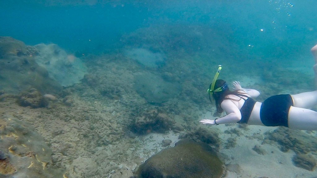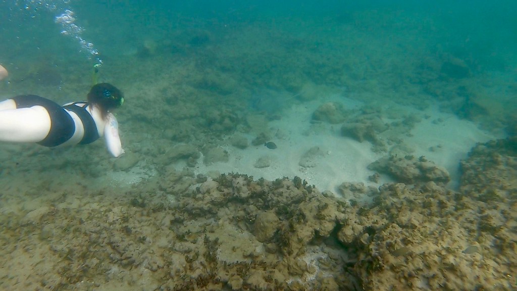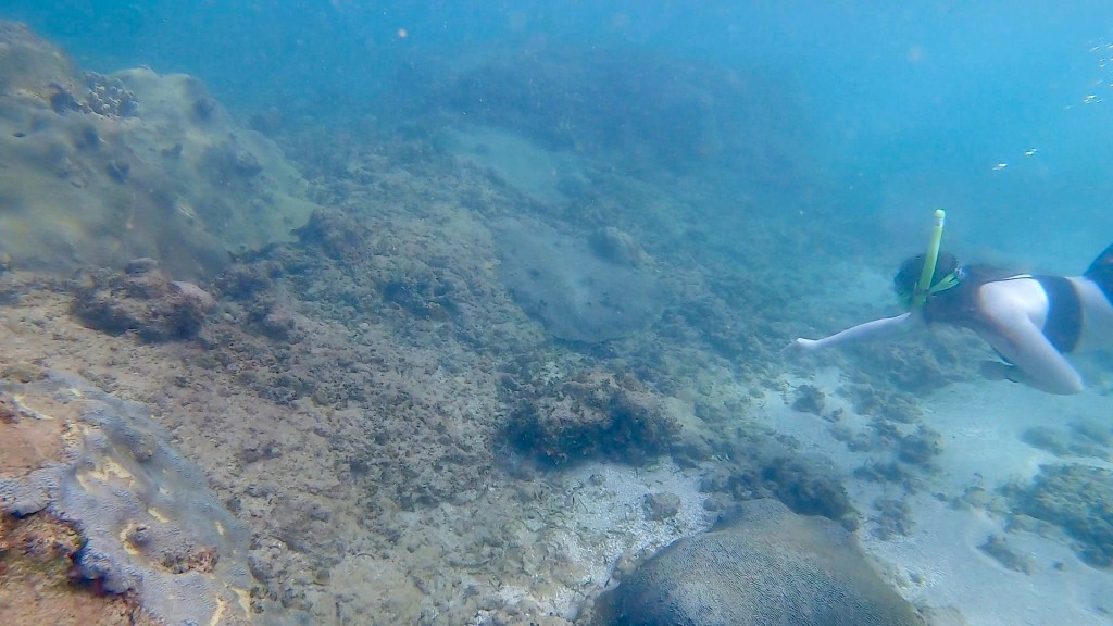 I have a bit of a sunburn on my face around the hairline. It’s a little bothersome. I also have some scrapes on my feet from the coral at the beaches. I would still have them even if I had worn water shoes as they happened yesterday fighting the waves when we went snorkeling.