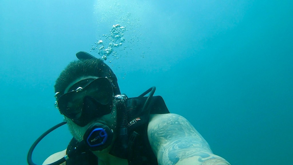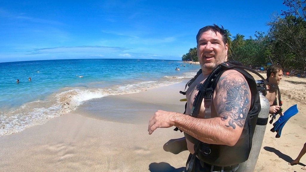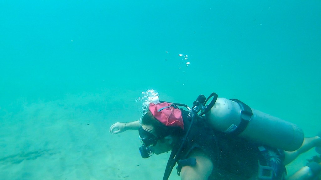 Good day everyone!! Today I got to do a shore dive! I have to say I like shore diving more than most of my boat dives. I think some weren’t bad but the water was calm and clear. The difference is a boat dive is where they take you out to where you will dive, you put your gear on and then you basically jump out of the boat in the ocean some distance from shore and you dive. Shore diving is just walking into the water from shore with your gear on and you keep going deeper and then you can dive. It’s usually not as deep of a dive but it can be depending where you are. Here, today I went down 11 meters or 33 feet. I’ve been down around 90 feet when I was in Jamaica.