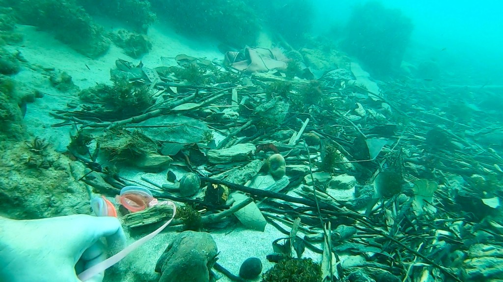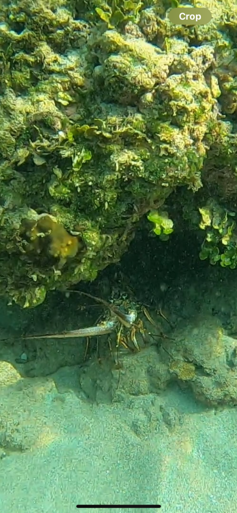 We really didn’t see much, there was a trigger fish, a whip tail stingray and a couple of lobsters hiding in a hole. The reef was neat to swim though and I enjoyed the formations. There was some bleaching of the corals here. Not sure if it is from warmer water or from being touched. The reef in places is pretty shallow and is good for snorkeling from shore. I was unable to get clear shots of the fish and ray due to the clarity of the water.