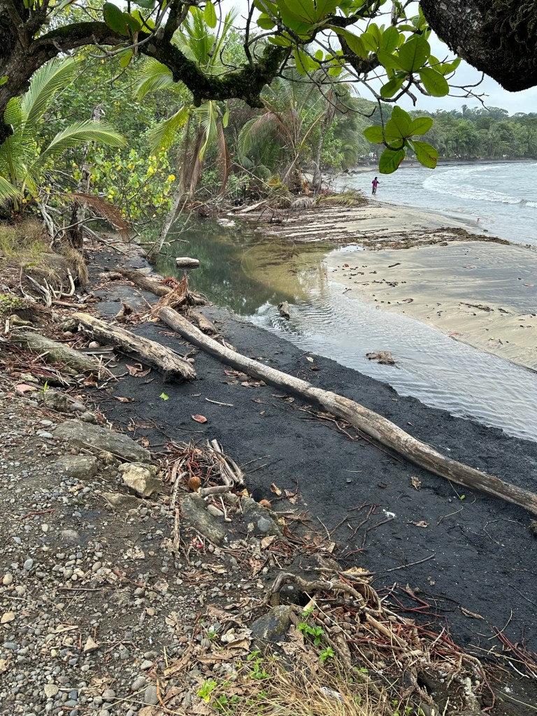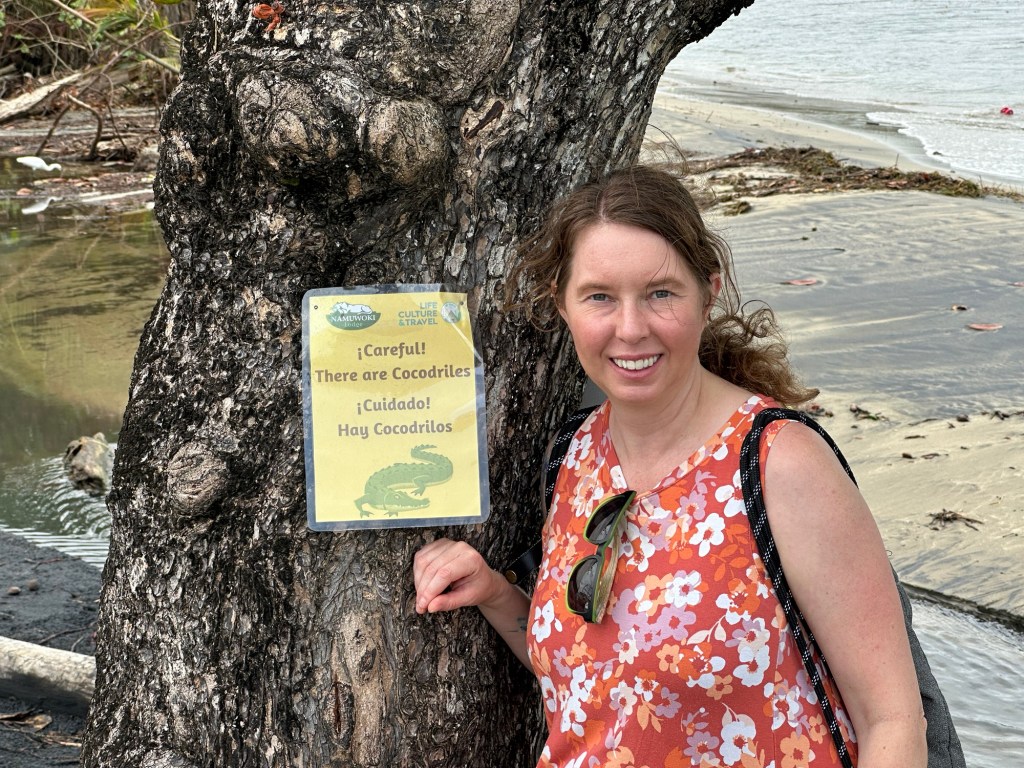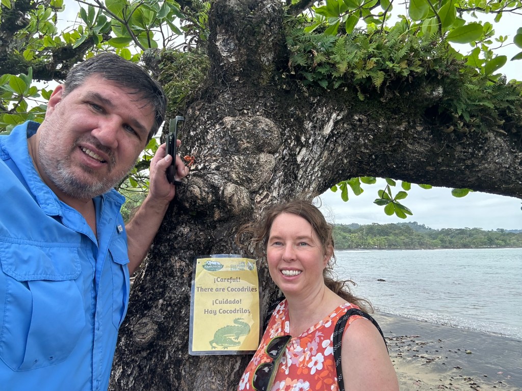Not much excitement went on today. We took a ride over to Puerto Viejo to get a picture of the sign about crocodiles. On the way there we had a run in with the law. Breaking the law… I was given a ticket for not wearing a helmet while driving the scooter. It was an interesting experience, they had to look over my passport, could have went badly I suppose if I hadn’t had my passport. Technically you’re supposed to have it when traveling around. Normally we do not carry them but we had brought the little backpack that locks. We had worn our helmets for a while but then we opted out as it seems half the people do and half do not. The scooter guy told us the regular police don’t usually care and the tourists police do. We hit a tourist police check point, they also didn’t seem to care about some of the riders that went by while we were being talked to. If I don’t pay the ticket they charge it to the scooter company. We will pay it, I’m sure the scooter company will take it from the deposit.