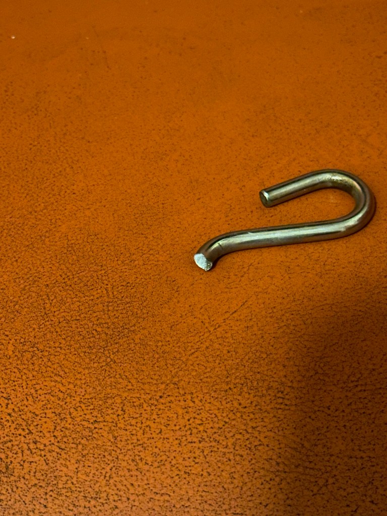 This afternoon I was listening to a book and relaxing in the hammock and the hook broke after I had been in the hammock for quite a while.