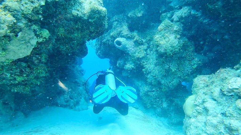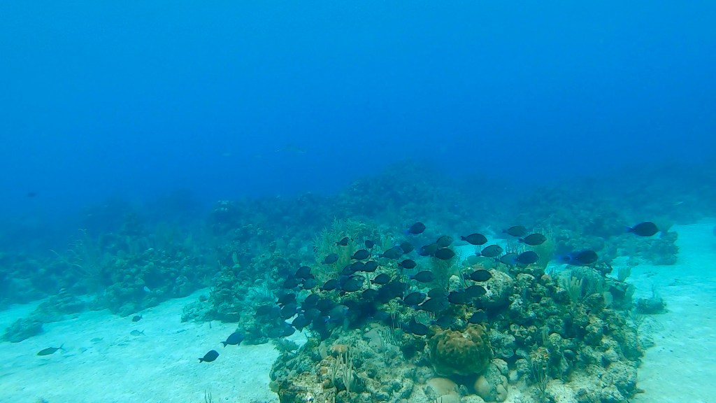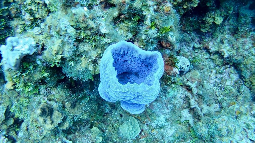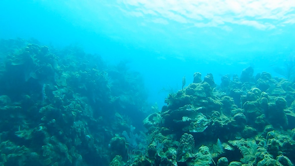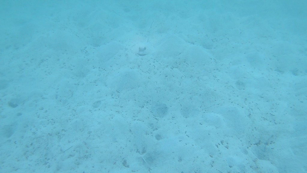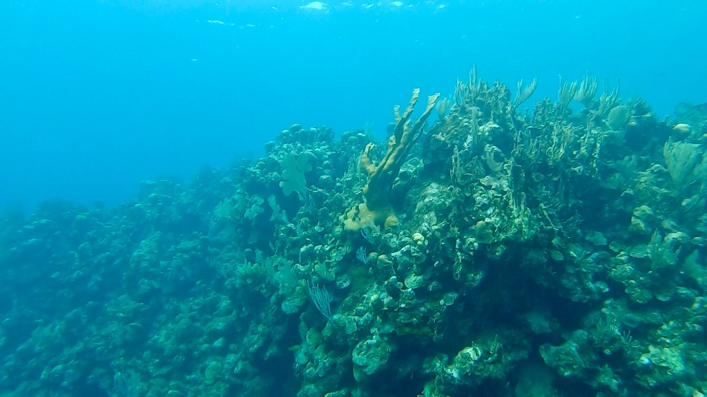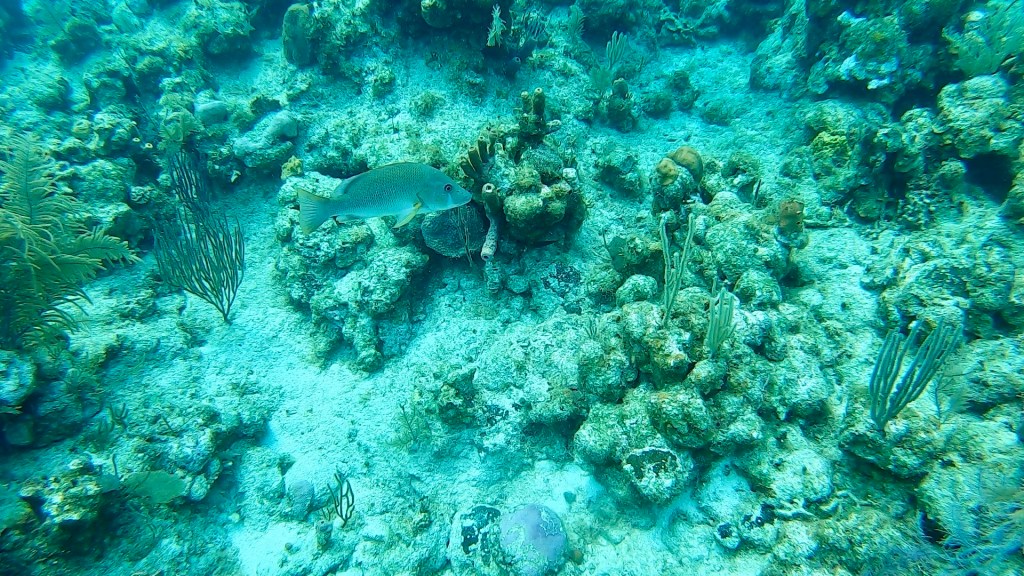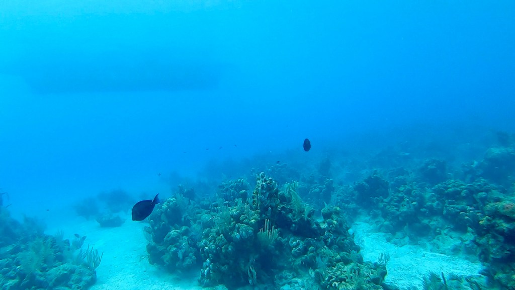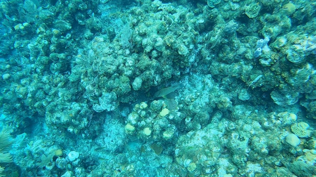 I was able to get my camera working again with the old SD card. No malfunctions today. Water clarity was okay but some areas it was diminished and I wasn’t able to get some pictures of the squid and giant puffer fish. The squid were small but the puffer was the biggest I’d seen. I did swim through the reef in one spot, it wasn’t very far maybe 8 feet.
