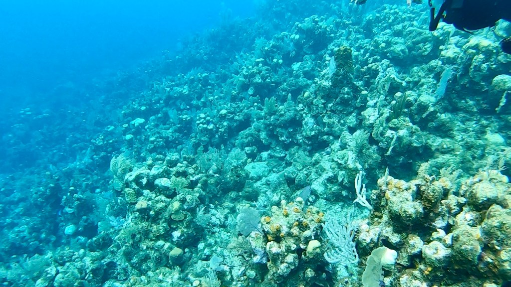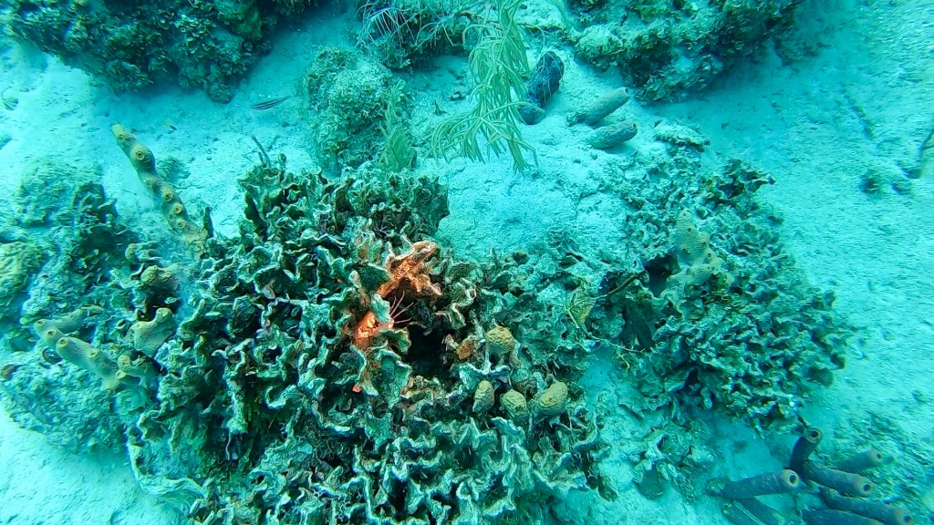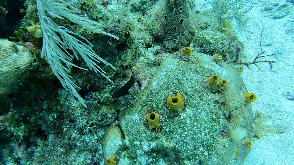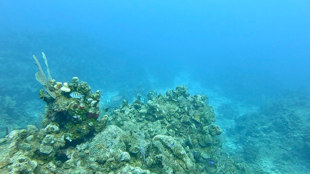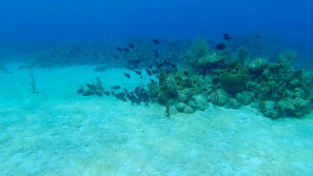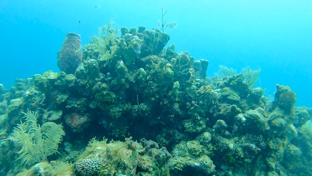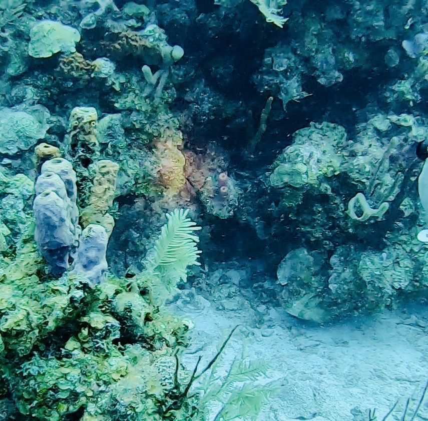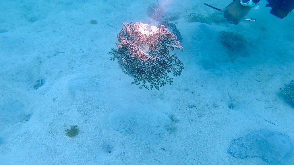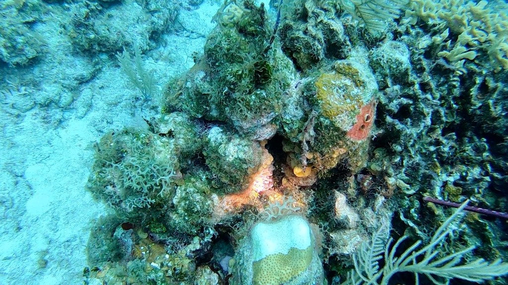 I was able to get my camera working again with the old SD card. No malfunctions today. Water clarity was okay but some areas it was diminished and I wasn’t able to get some pictures of the squid and giant puffer fish. The squid were small but the puffer was the biggest I’d seen. I did swim through the reef in one spot, it wasn’t very far maybe 8 feet.
