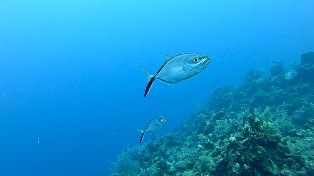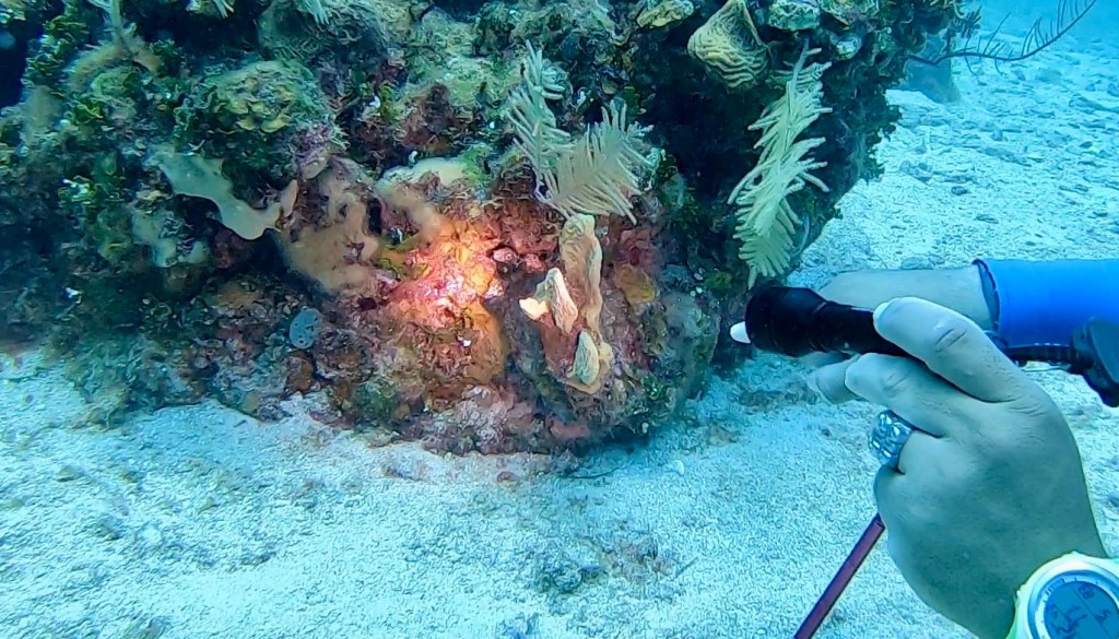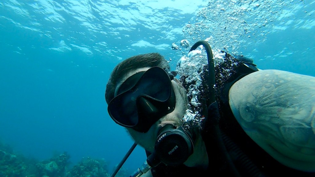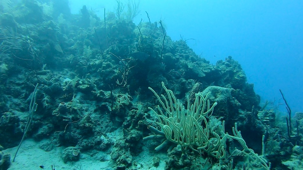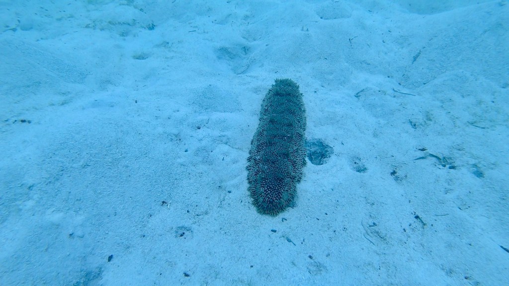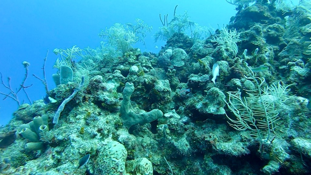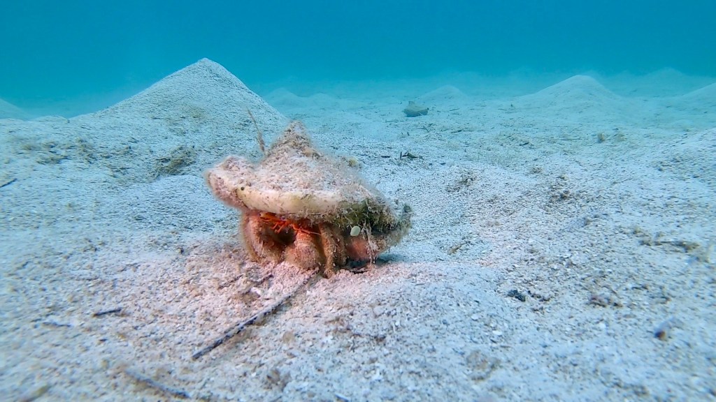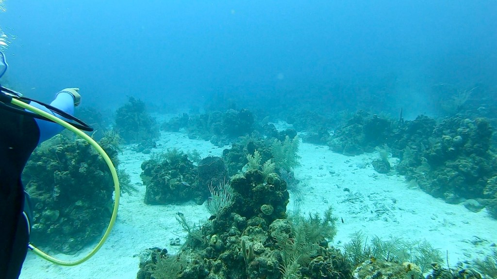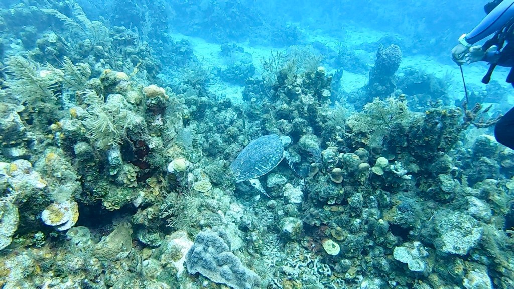 I was able to get my camera working again with the old SD card. No malfunctions today. Water clarity was okay but some areas it was diminished and I wasn’t able to get some pictures of the squid and giant puffer fish. The squid were small but the puffer was the biggest I’d seen. I did swim through the reef in one spot, it wasn’t very far maybe 8 feet.