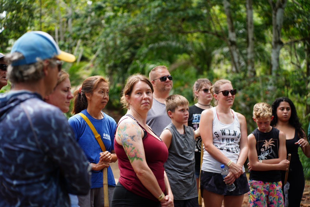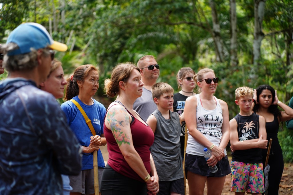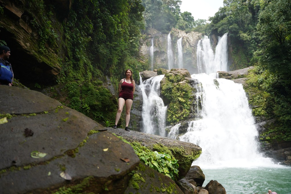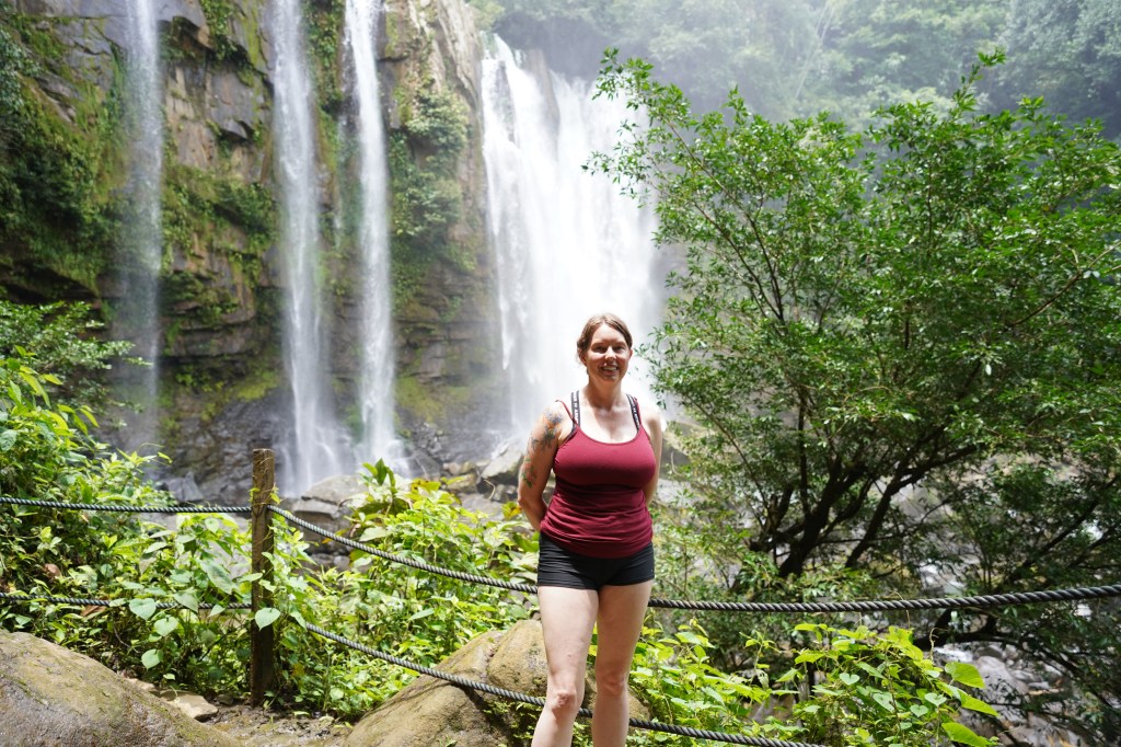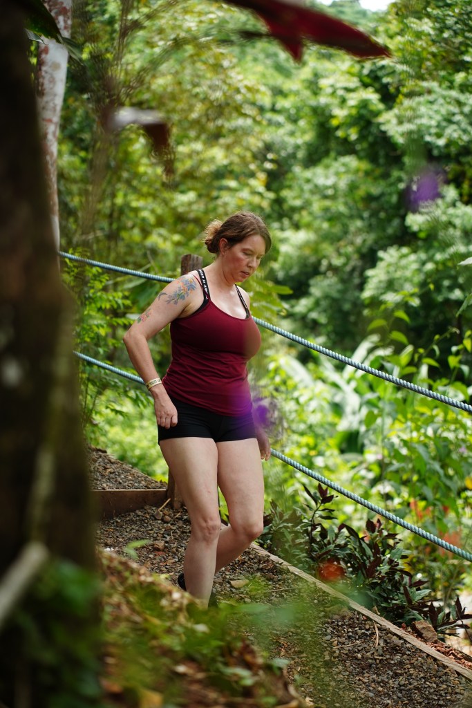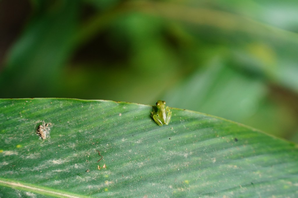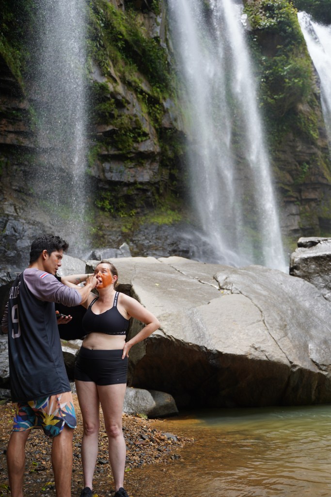 We hiked down to the first waterfall, where there was a shallow pool to swim and jump into. We also got mud face masks. The guides picked up special rocks that had the consistency of wet chalk and smeared it all over our faces. We had to let it dry then wash it off. It’s supposed to be really good for your skin. I talked to another woman who was about my age with three kids and we felt like we needed a full body experience to peel back more layers of aging. There are also a bunch of tiny glass frogs. Part of my tattoo is a glass frog, but I had never seen a real one. They were amazing! They are called glass frogs because they are almost transparent and very hard to see. These were tiny – about the size or your little fingernail.