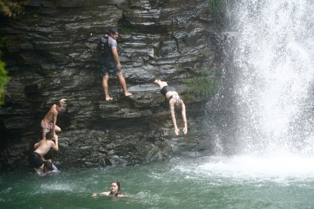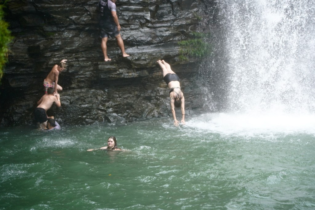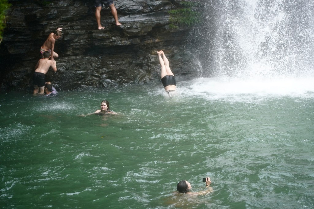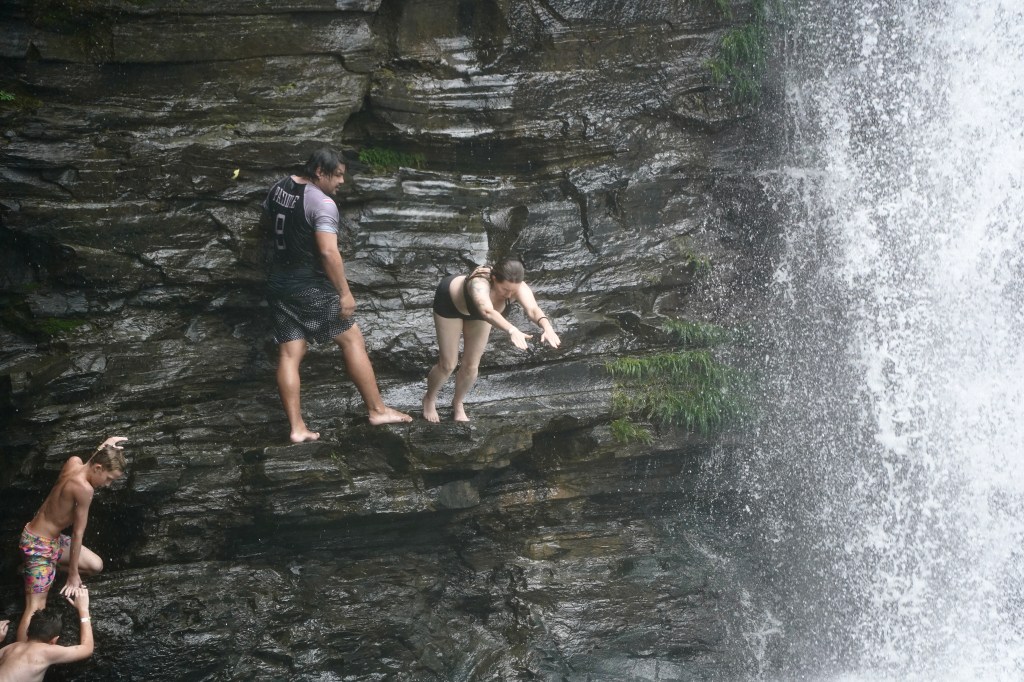 The first waterfall is the highest. After that, we went to the lower waterfall, which had a deeper pool but a much swifter current. You could do cliff jumping here, but it looked crazy dangerous and unpleasant. You had to climb up through the waterfall, with water pounding your face the whole time. It was very slippery. When you got to the top, it was a 30 ft drop down, which is a fairly long fall. Landing wrong would be unpleasant at best. I love the idea of cliff jumping, but I don’t really enjoy the feeling of free falling anymore. I did the 5 ft jump, which still had a fairly difficult climb up. I could have gone a little higher, but I’m not up for long falls anymore. Plus, everything was slippery and the rocks were sharp. I’ve got some bruises but nothing serious. There was a family with a couple of fairly young boys. They wanted to do the 30 ft jump, but their dad absolutely refused and didn’t care how mad they were. They are luck he had the good sense to tell them no. The boys got to do the 5ft jump too, which was dangerous enough. They seemed like a nice family from the Chicago area.
