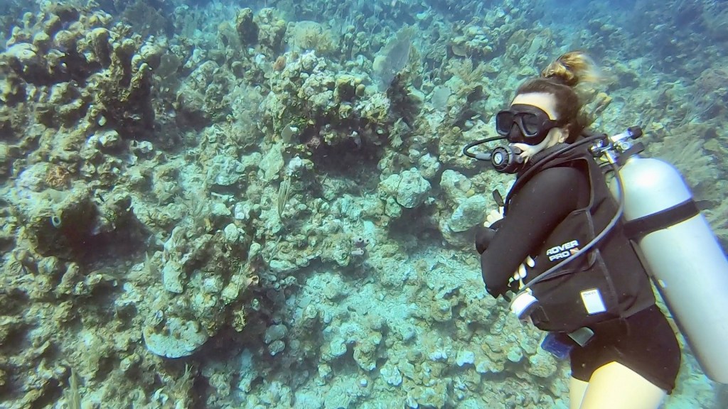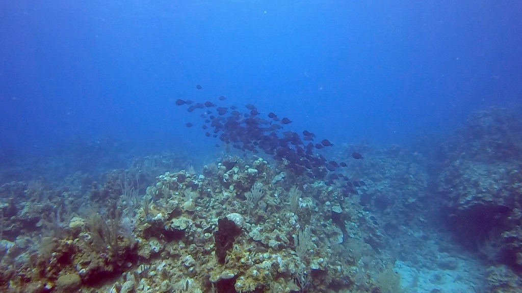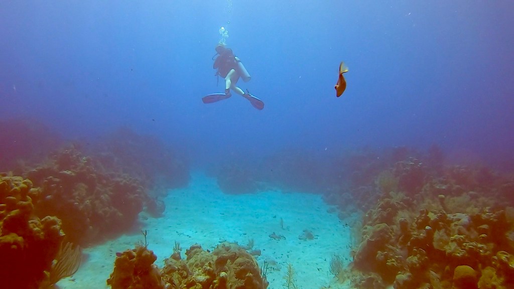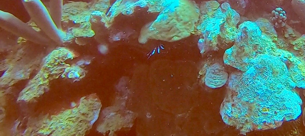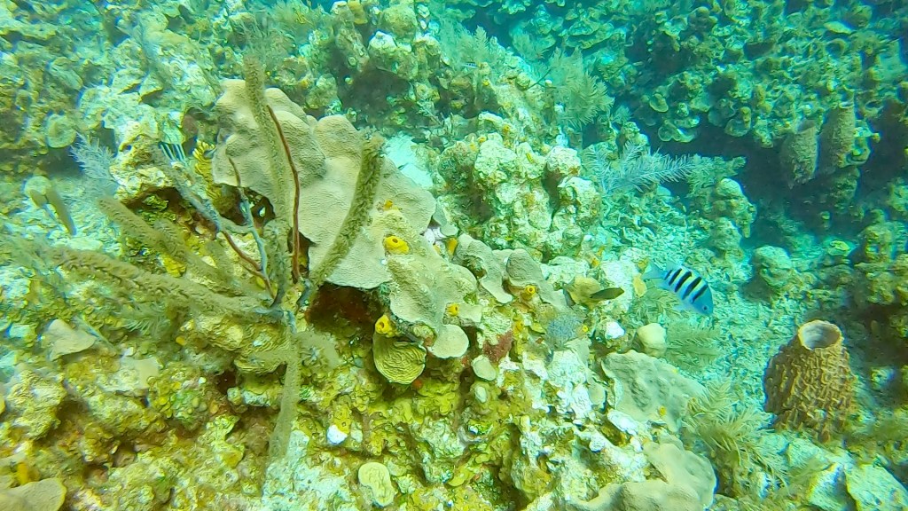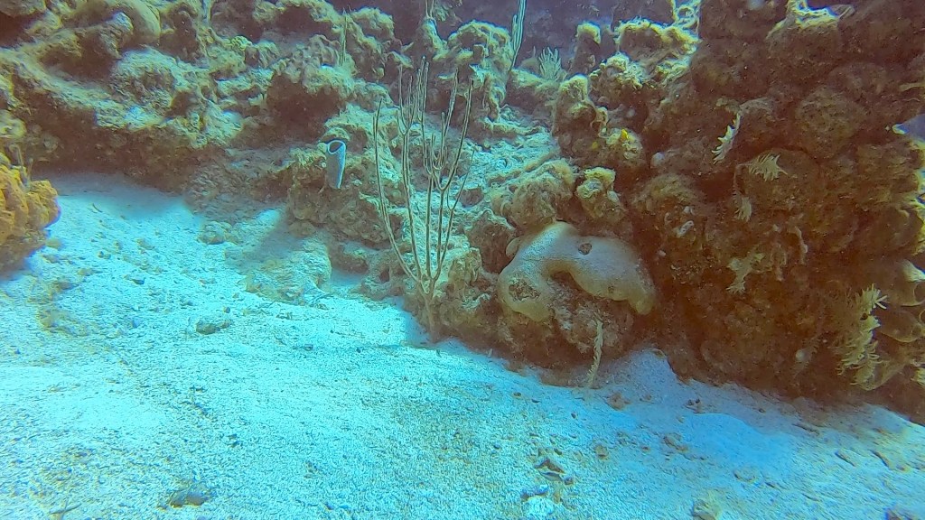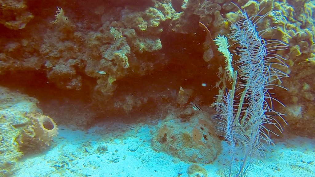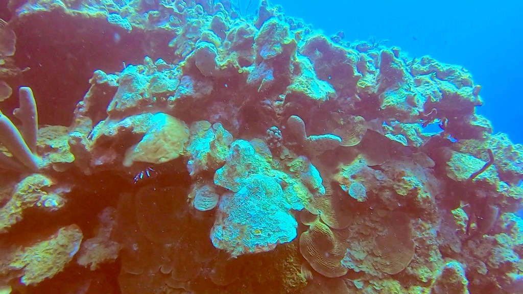 After lunch I had a 2:00 dive, it was okay. I’m supposed to have a private dive master but I didn’t get one. I still went and really missed my private dive master. I will have to ask about that tomorrow morning. We did a drift dive where you go with the current and then the boat comes and gets you. I have done that a fair amount in Costa Rica. Most of the dives here have been swim out from the boat and then back to the boat after exploring the reef. Not as much stuff to see as my dive yesterday when I forgot my camera, but I did get some pictures.