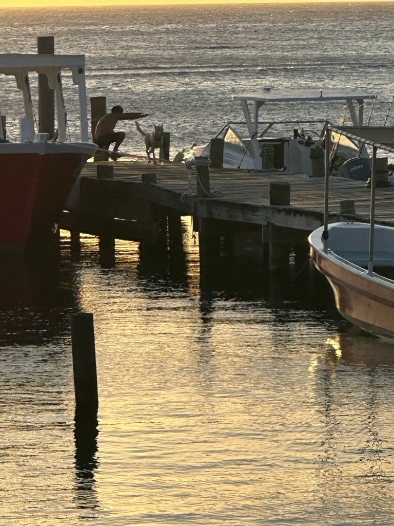 At dinner we watched a dog having a good time swimming back and forth between the Splash inn dock and West End diver’s dock where his friend was doing body weight squats.