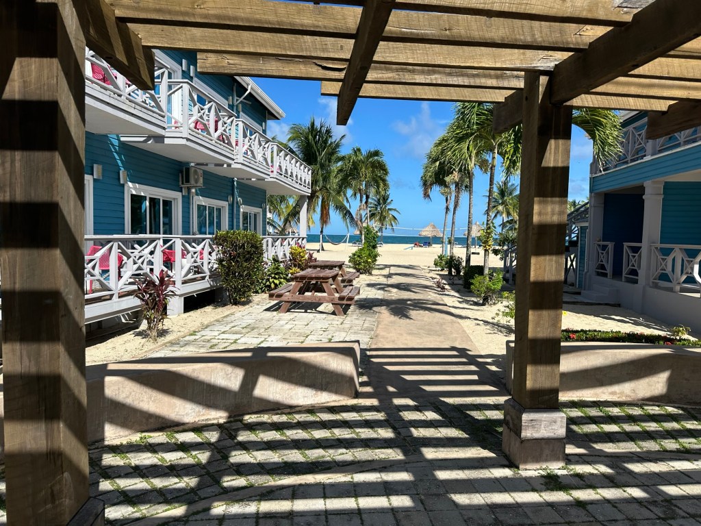 We are staying in a very nice two bedroom “condo” that is most likely an investment property. Some of the accommodations here are just owned and the people live in them and some are vacation homes that are managed by the Resort/ Umaya https://www.umayaresortbelize.com/# it is a very nice place. I will complain about the lighting, especially in the kitchen. Tonight I took one of the bedside lamps and put it in the kitchen on top of the shelves and it helped a lot!