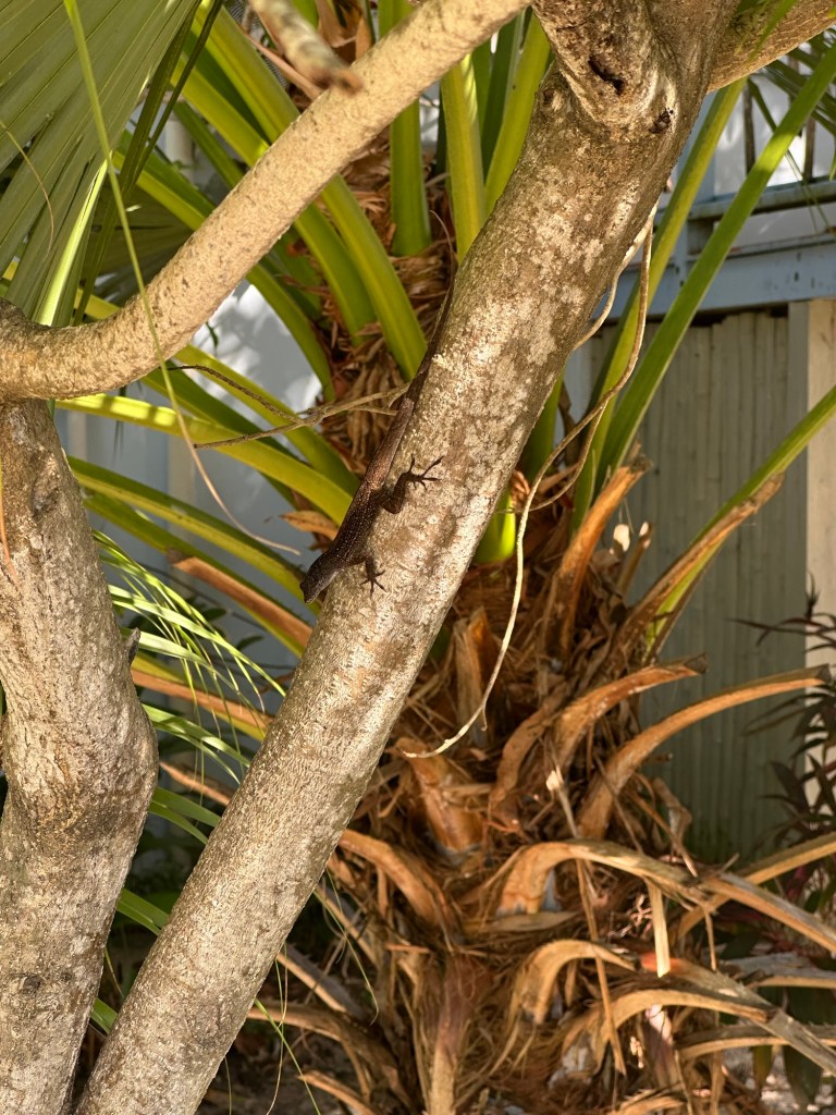 Today was almost the same as yesterday with a few differences. We rode bikes to a store for a few more groceries, stopped at a bakery then paid for a ride to the village for lunch and to look for coffee/tea cups. We didn’t end up with any cups. Our swimming was only in the pool today. There is a nice beach here, shallow for a fair distance out. It’s been breezy so the water is churned up with sediment so it wouldn’t be very clear. Yesterday the water was cloudy but we did see some Moon jellyfish and I seen a small ray. I also pick up a very small conch shell that turned out to still be inhabited, so it was returned to the water.