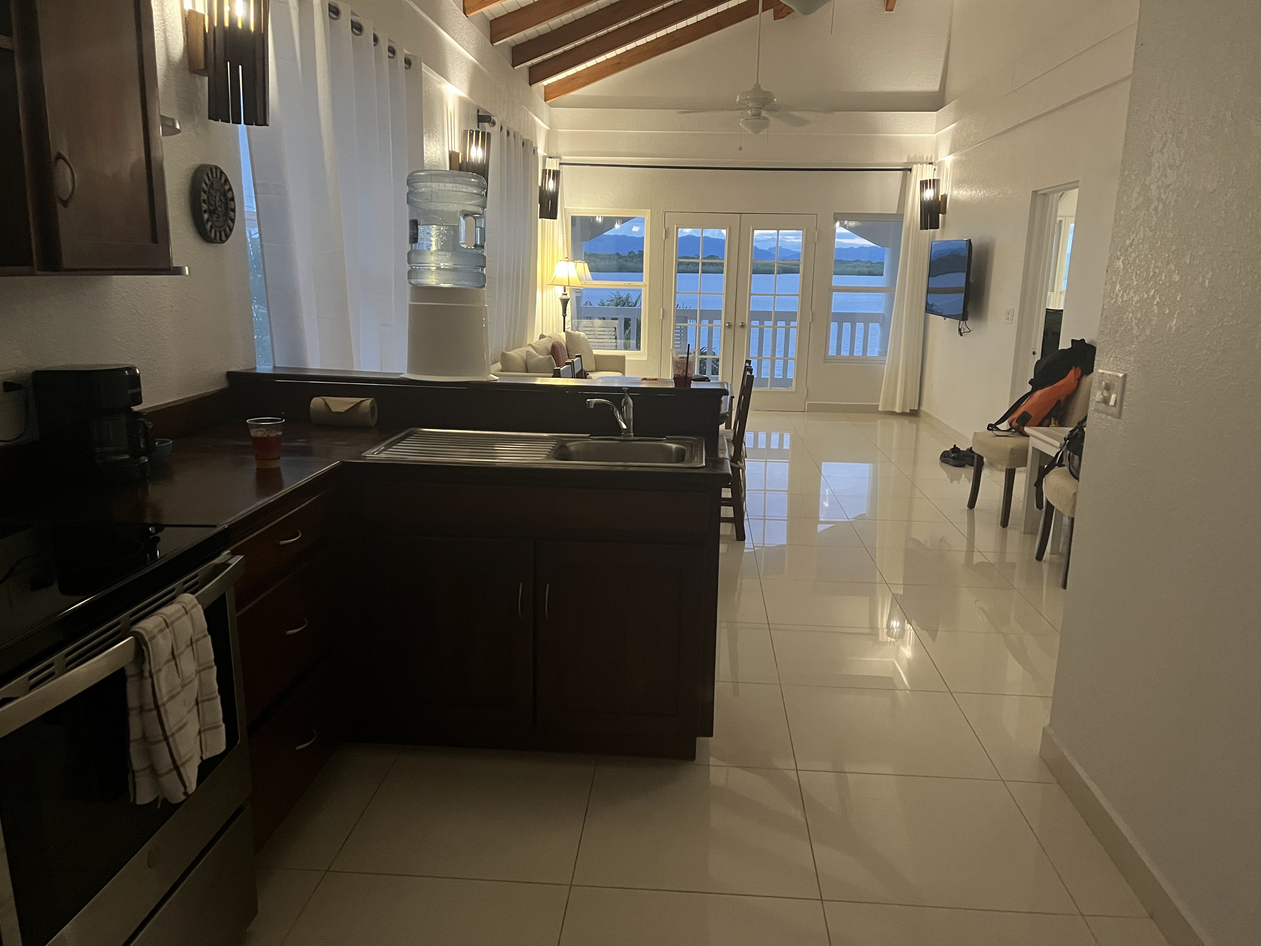 Hello All: We are having a very low key vacation, so I haven’t had much to write about, but we are in a lovely place! Our apartment has 2 bedrooms, 2 bathrooms, a kitchen and a living room with a big sofa. I’m currently on the balcony overlooking the lagoon. There is a nice breeze so it’s perfect weather for being on the balcony and the view of the lagoon is beautiful. This is the off season, so there are very few people at the hotel or in town, so it’s easy to book things and we don’t have to wait for anything.