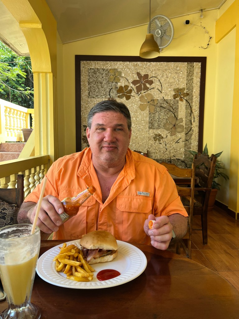 We had planned to do snorkeling/diving today, but the dive shop didn’t get back to us. We probably could have taken a taxi into town to see if the shop was doing a dive today, but we decided to go down for lunch instead and try to book something for tomorrow. We still have several days to book some diving/snorkeling.