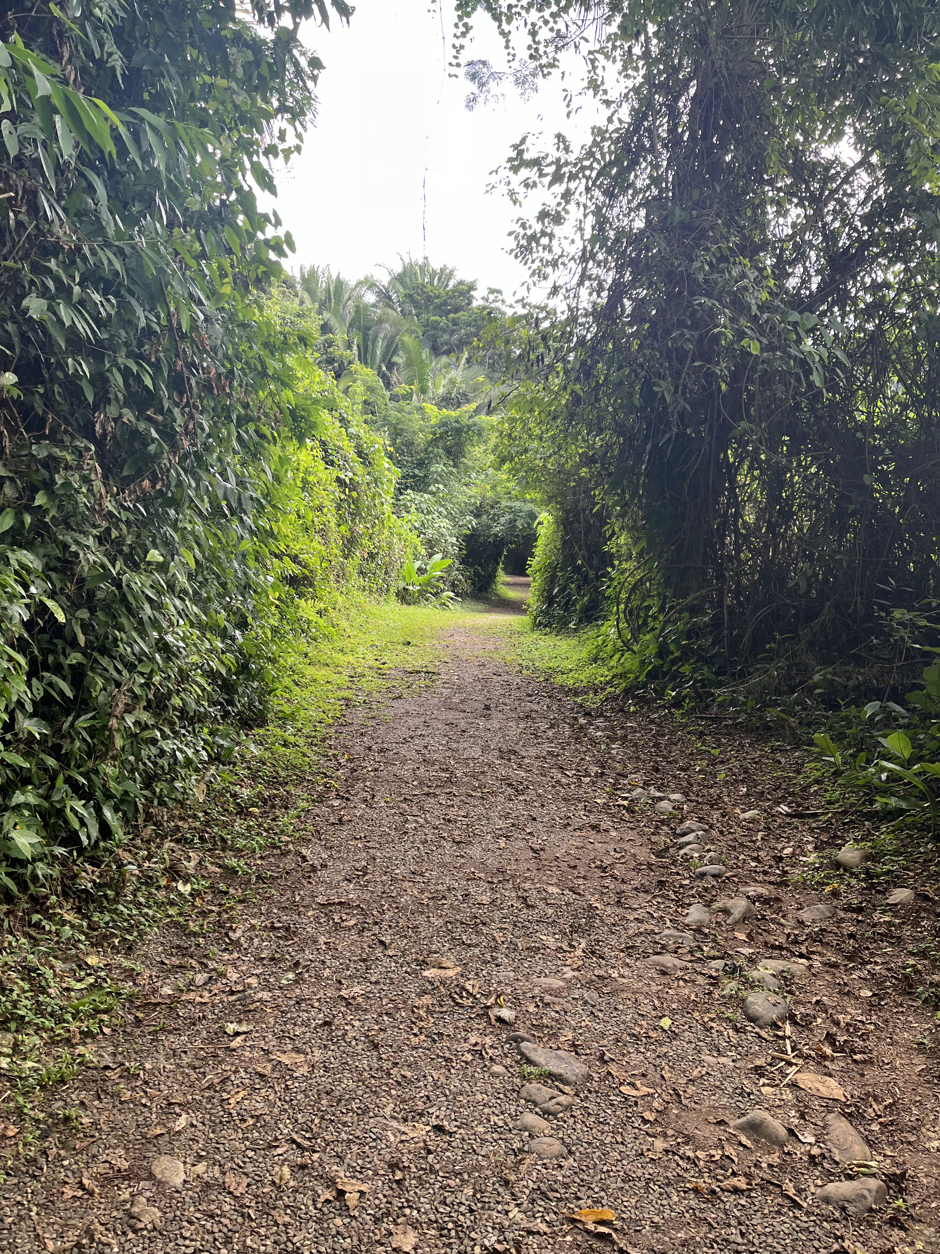 Yesterday, we did a cave hike and “blue hole”swim. I really enjoyed the hiking. After we did the first cave, I went on an additional hike by myself to find a second cave. I never found the second cave. It must have been further along on the trail, but I didn’t want to make Bill and the driver wait for me too long. It took me an extra 45 minutes as it was. It was a great hike though. The trail is fairly well-maintained and it’s covered in a canopy of vegetation. Part of the trail was rough steps cut into the side of a “mountain” so it was pretty steep. I was soaked in sweat and humidity by the time I got back, but it was fun. It also made the blue hole feel really good even though it was a little cold. I should have taken more pictures, but I have one of an easy part of the trail.