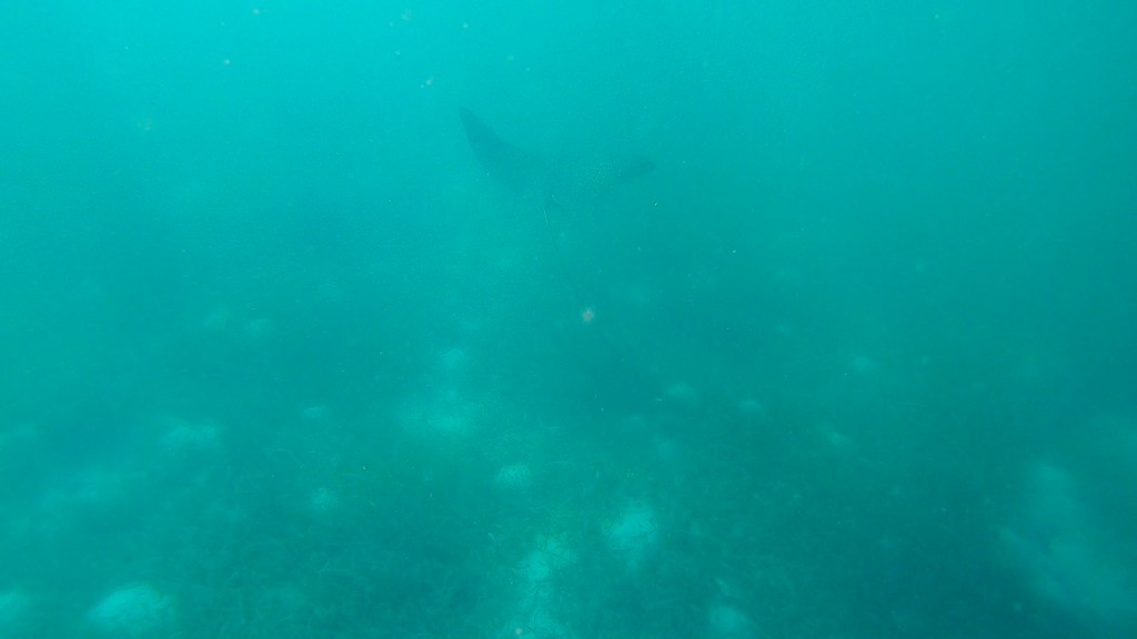 The tour usually goes to a second location after lunch but because the water was so rough they opted to stay in the same place and about half of the people didn’t snorkel including us. It was nice to just hang out and enjoy the sun and fresh air. After we went to see sharks, rays and turtles. It was horrible. I stayed in the water only for a short time. I had gotten in and seen a fairly large eagle ray and a few nurse sharks and I only seen shadows where the turtles were at and most of that was probably the mob of people swimming around trying to see them, so I went back to the boat.