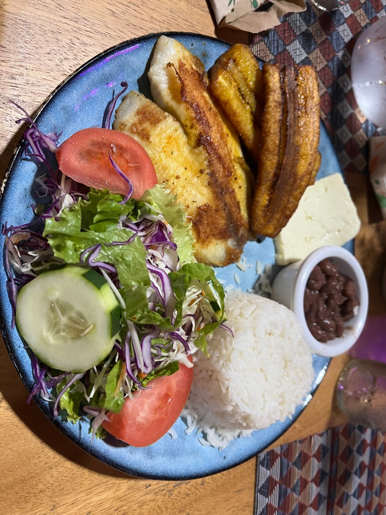 The hotel raises its own tilapia. There are tilapia ponds in several places. Costa Rica actually raises a lot of tilapia. This was the best tilapia I’ve ever had. The restaurant breaded it really nicely.