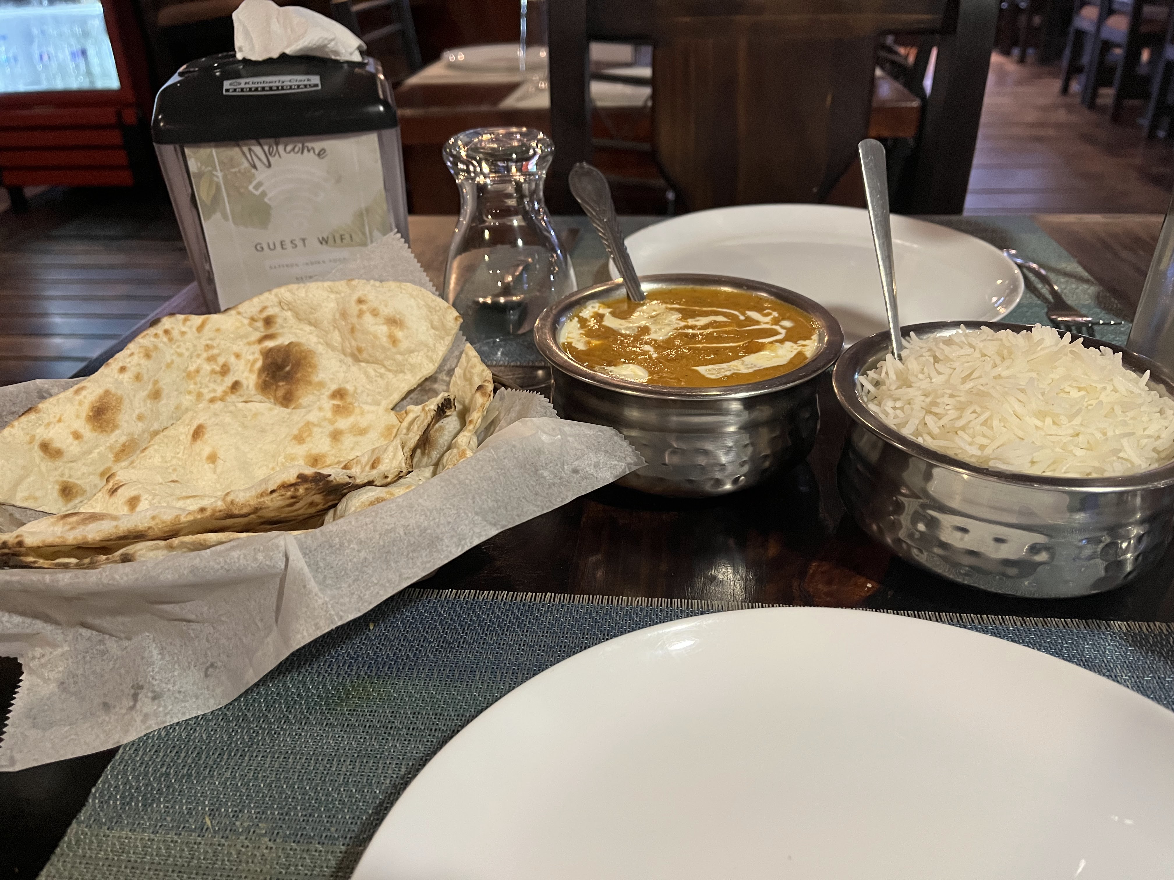 There is an Indian restaurants right down the road from the hotel where I was staying, so I ate there last night. It was really good! The Indians who own restaurants in Costa Rica make their food spicy. I ordered medium paneer butter masala, and I felt it!
