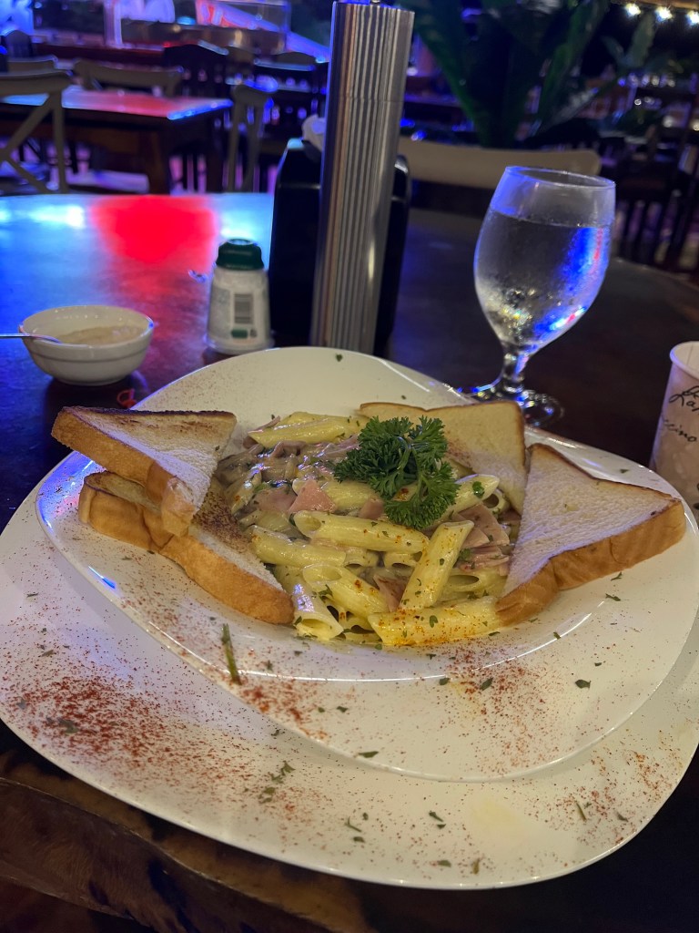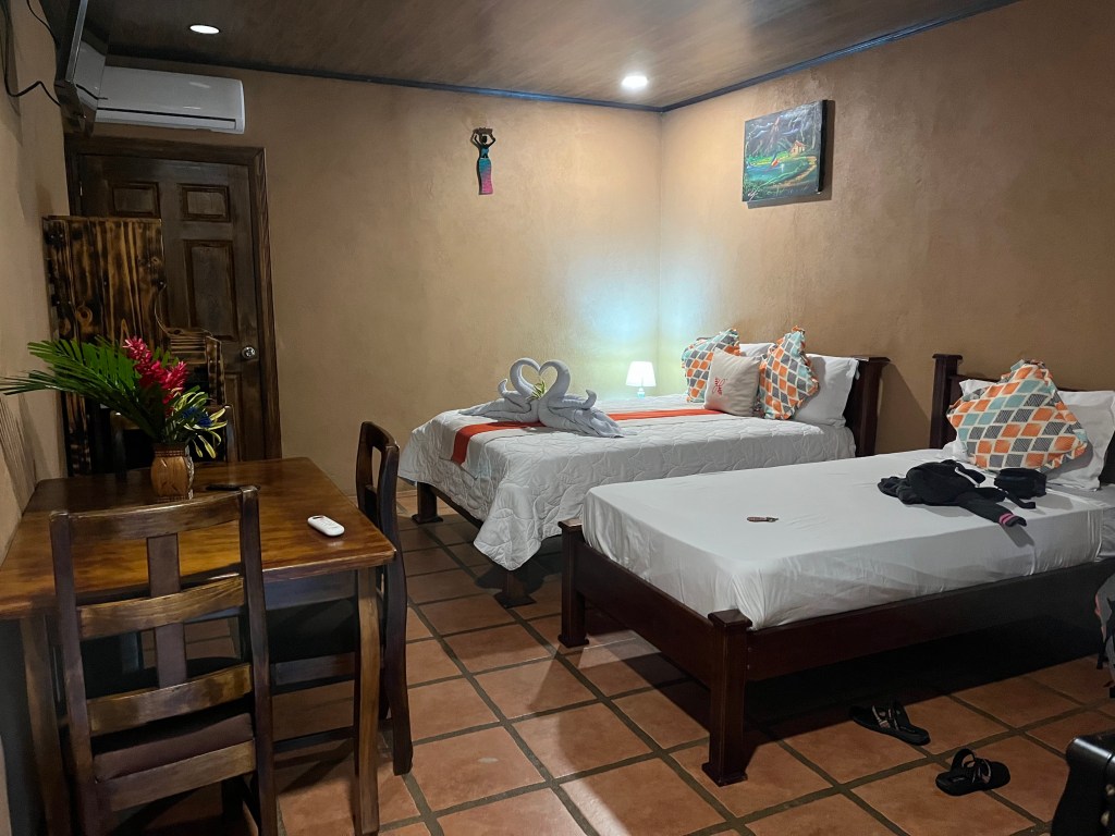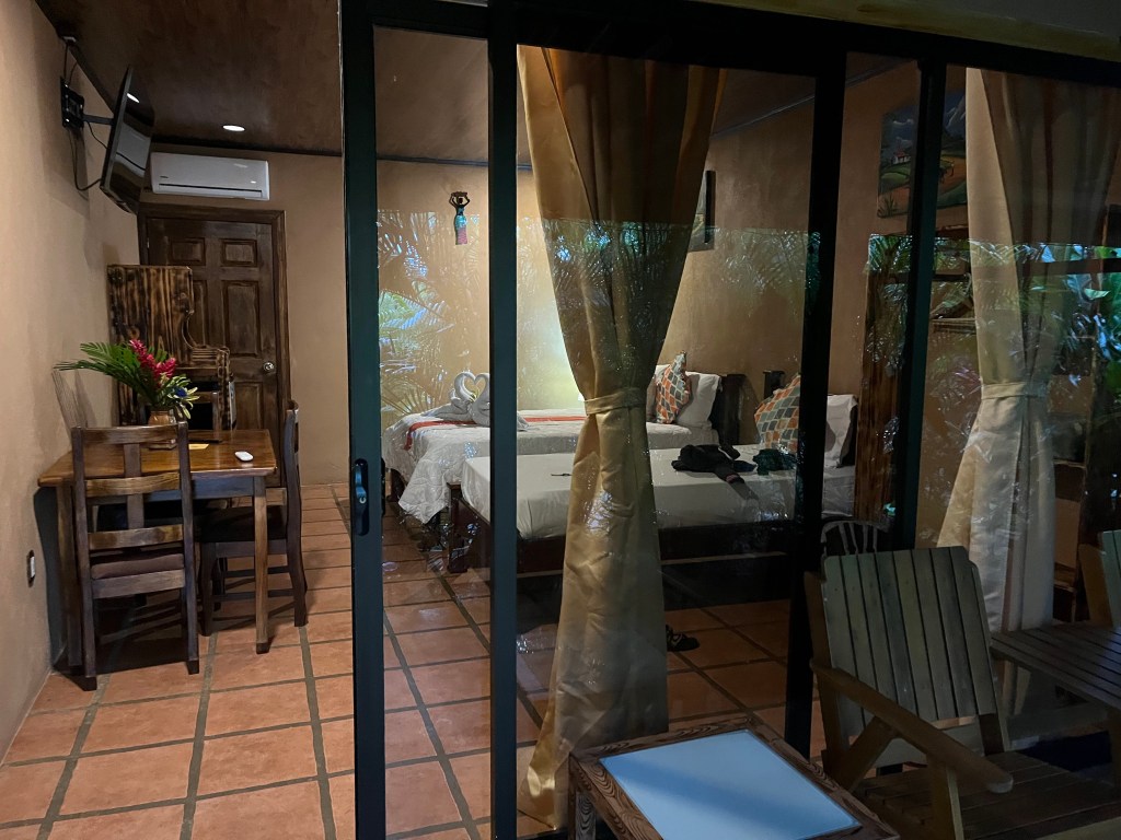I have no idea how they run this place for $95 a night. There are similar places here that cost $400+ a night. It is in the middle of nowhere. There is a restaurant on site, but without a car, that’s your only option. The food is good though and not that expensive. I had pasta for $12 tonight. I highly recommend this hotel and I’m hoping to come back next weekend. If any of you want more information, the website has some good videos. https://heliconiasnatureinn.com/