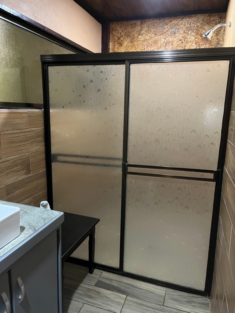 The drive here last night was an adventure. My taxi driver showed up at TEC in a beat up van that had definitely seen better days. Driving at night in Costa Rica, especially this part which has mountains and all the roads are like narrow snakes, is iffy and it was raining. The wipers on the van needed some serious work. The driver almost hit an elderly guy out walking in the rain. In the driver’s defense, the elderly guy was in dark clothes with a black umbrella and was almost invisible in the rain. The driver kept sending messages on his phone while driving, and we hit a pretty serious pothole on the way here. There are a lot of one lane bridges to get here which slows things down. By the time we got to the hotel, the van was really smelling like gasoline. The driver was super nice though!