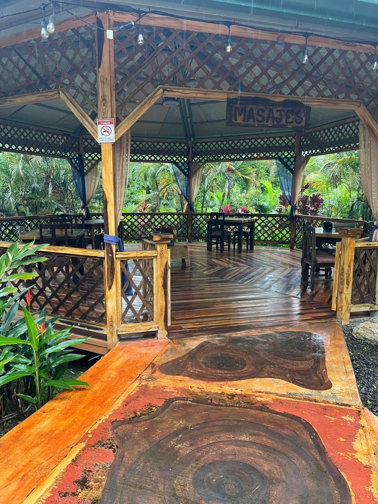 At 11am, I got a massage on the yoga deck near the thermal pools. The massage therapist did a great job! She used hot stones on my back, which I had not had done before, but I really like it. I’m pretty sore from walking up all the hills around here and my gym experience, so the massage helped.