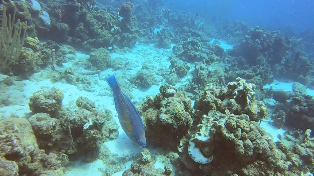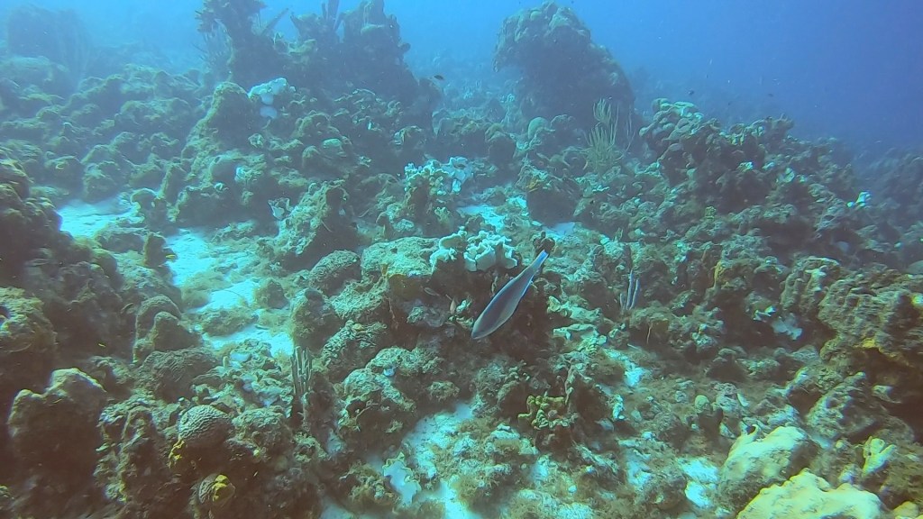 This morning was the beginning of diving with Karl. Karl comes down from Amsterdam to Curaçao for three months to take people diving. Karl does a good job and he wanted to work on my breathing and buoyancy. Yesterday they had me on a regular tank and Peter said it was a 45 minute dive but it felt shorter. The second dive the gave me a bigger tank and Jason said based on his computer it was a solid 45 minute dive. This morning I got a full hour dive with Karl and still had another ten minutes he said before hitting the limit.