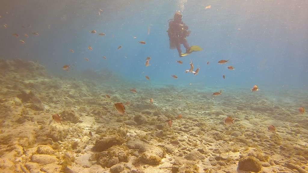 I believe Monday we will be going to a beach to for my morning dive that may have turtles. Karl said the fishermen clean their catch and put the waste into the water and the turtles come for a free meal. Better to see things that isn’t because of people doing something to change their behavior but it may be the only way to see a turtle here.
